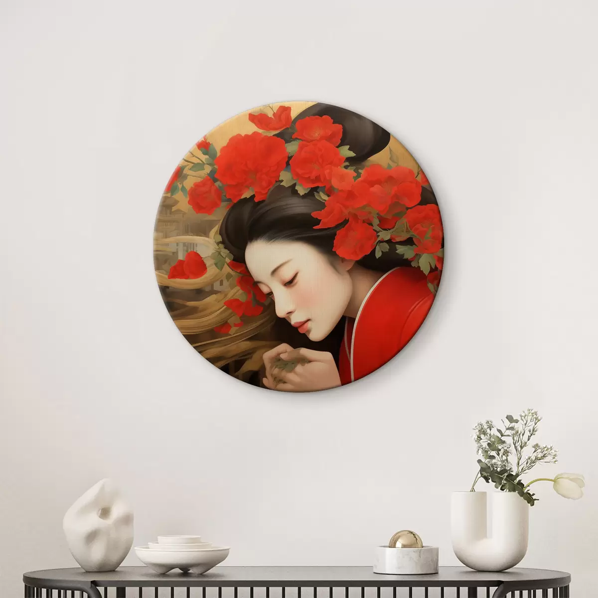 Ronde schilderijen Vrouw met bloemen in haar haar r36809
