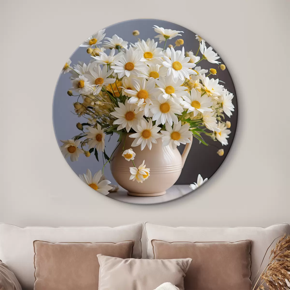 Ronde schilderijen Grote vaas met een boeket madeliefjes Nr r36813