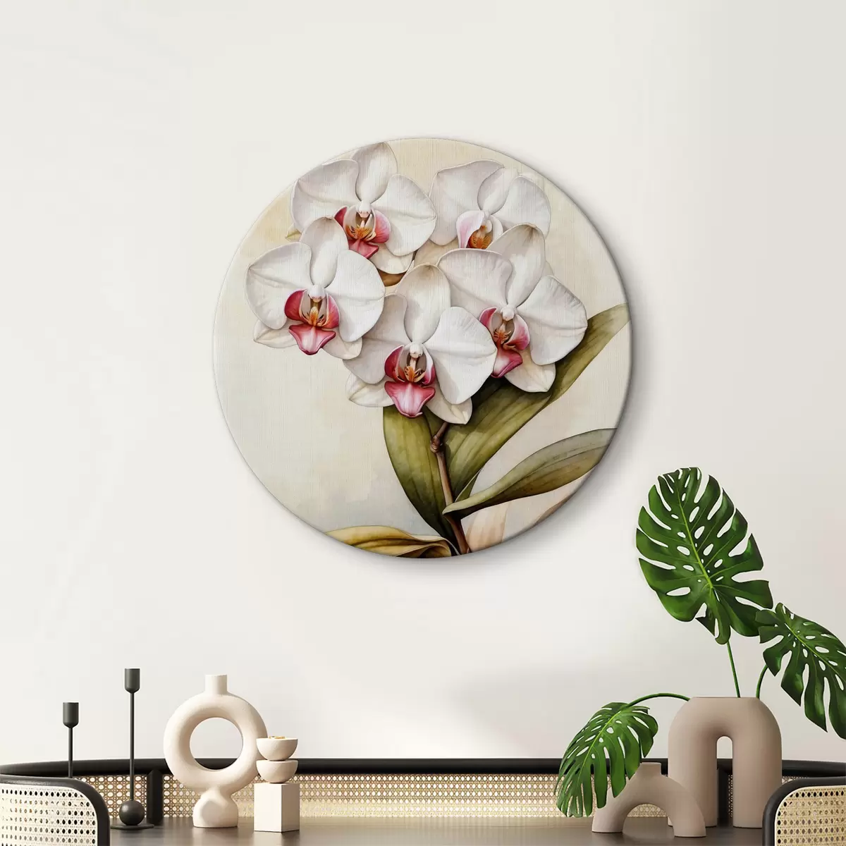 Ronde schilderijen Orchidee op aquarelachtergrond Nr r36829