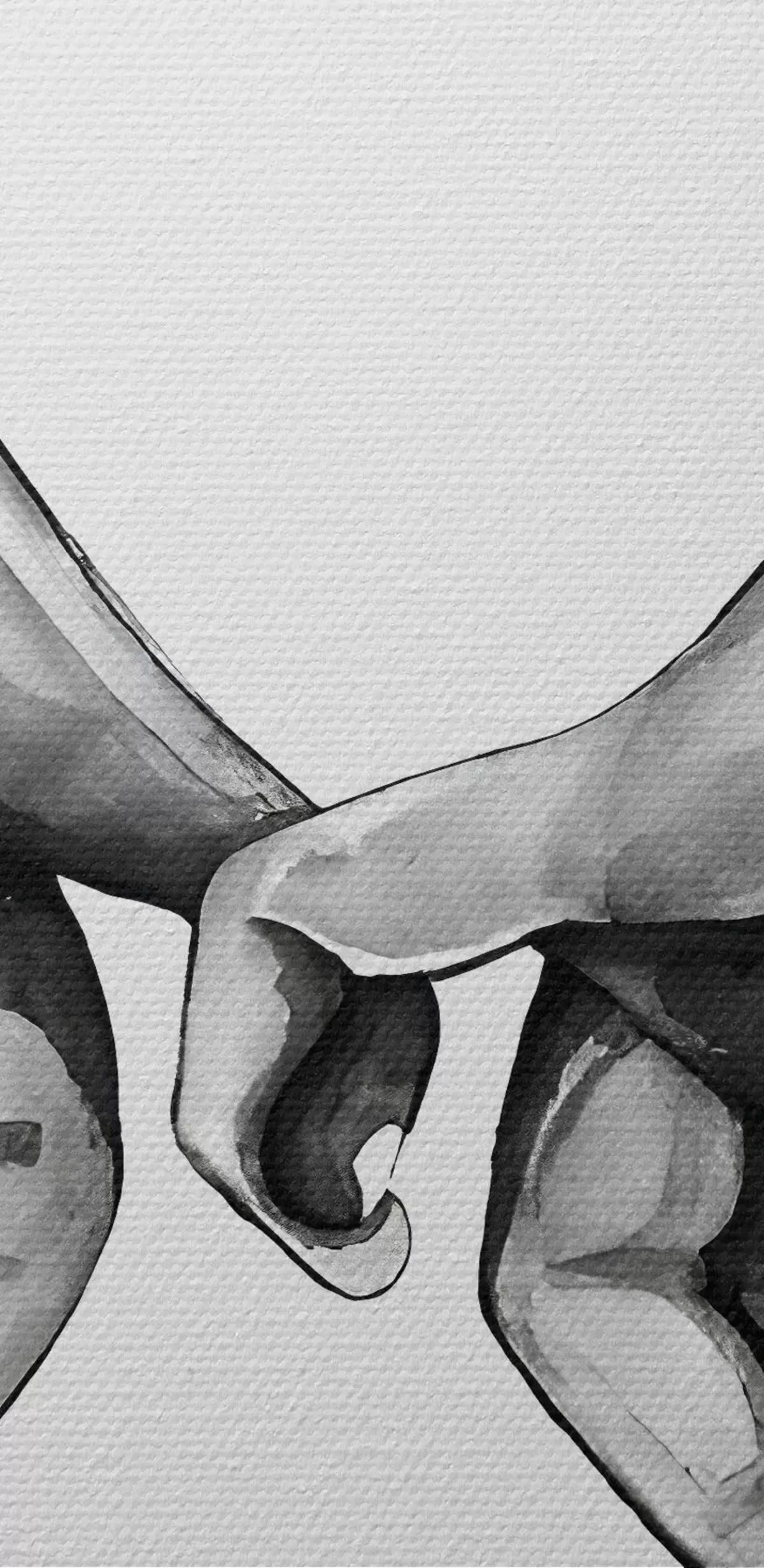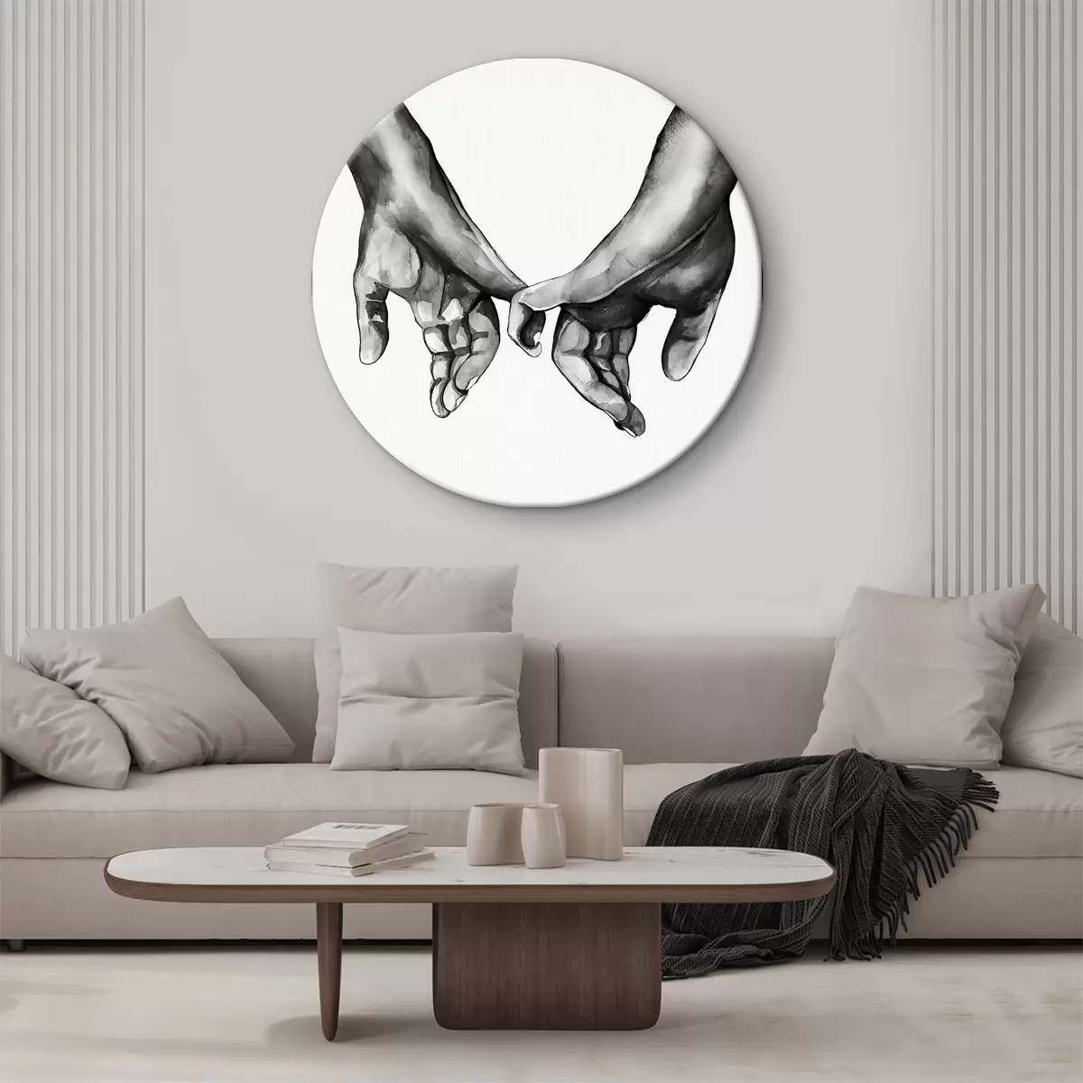 Ronde schilderijen Zwart en wit die handen op een witte achtergrond houden Nr r36848