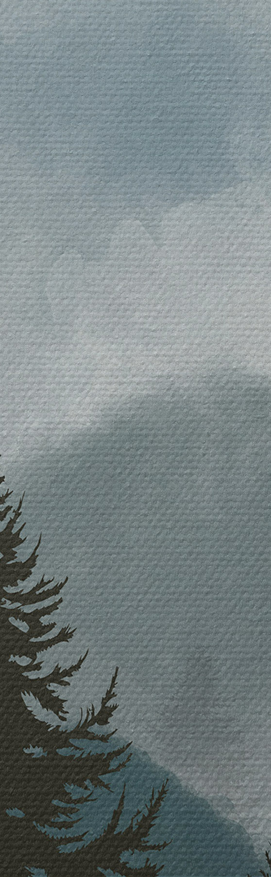 Ronde schilderijen Berglandschap met dennenbomen in aquarel Nr r37017