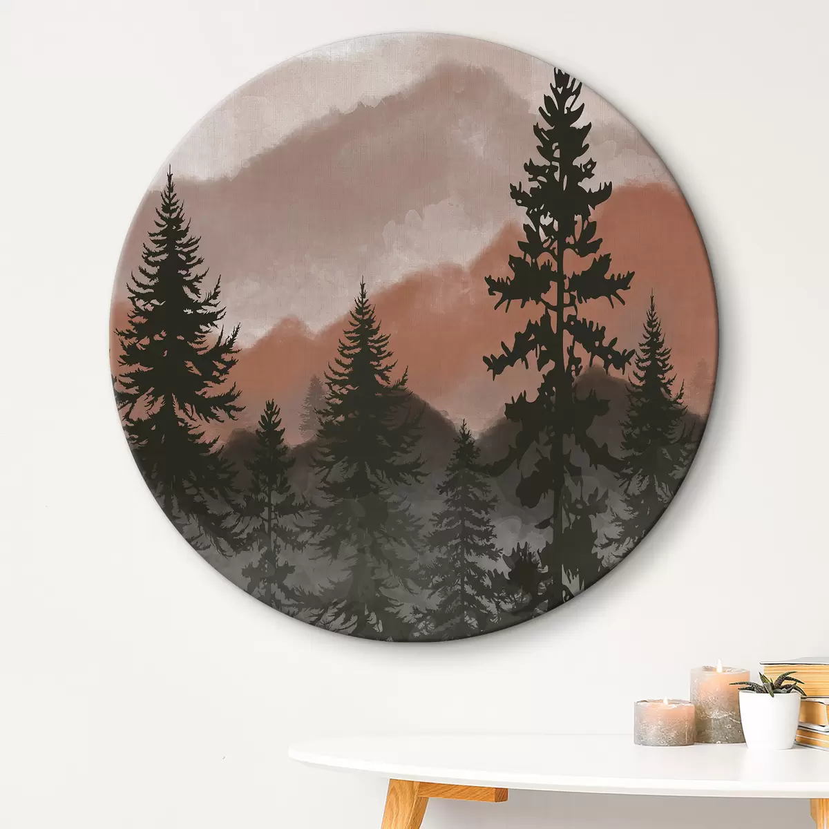 Ronde schilderijen Berglandschap met dennenbomen in aquarel Nr r37017v2