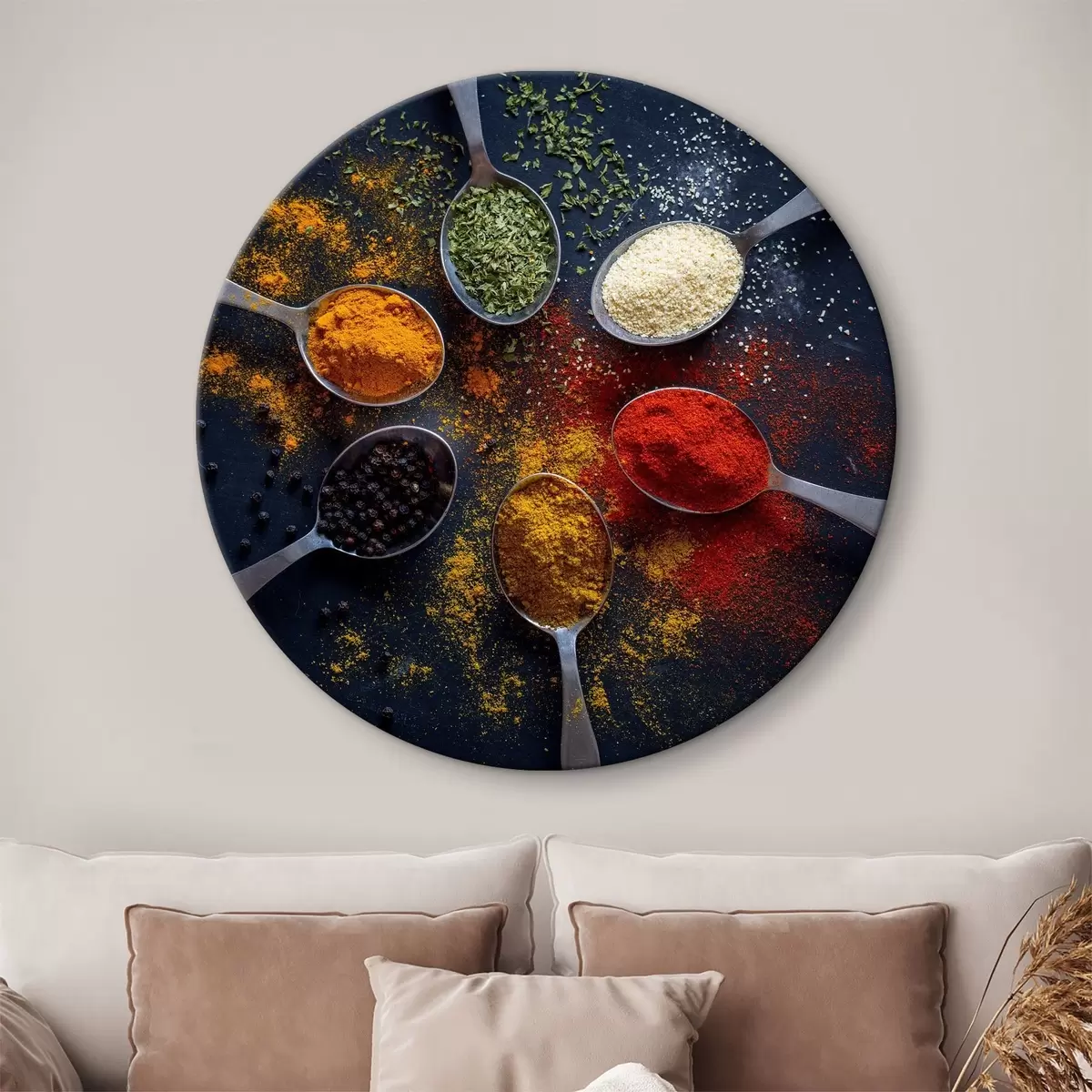 Ronde schilderijen Groep lepels met verschillende kruiden r37046
