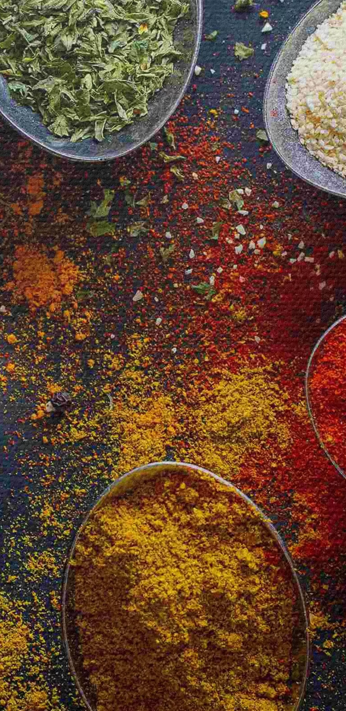 Ronde schilderijen Groep lepels met verschillende kruiden Nr r37046