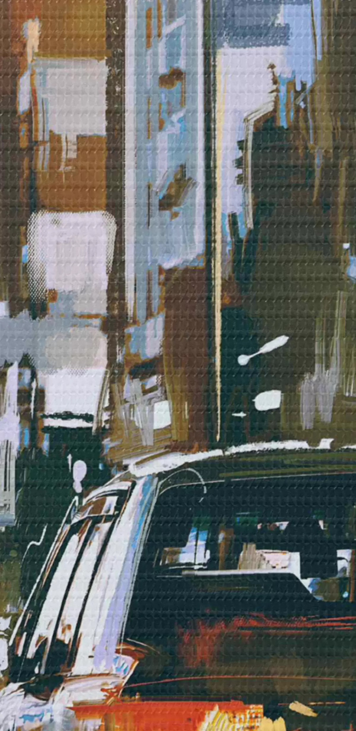 Ronde schilderijen Stadslandschap en auto bij nacht Nr r37085