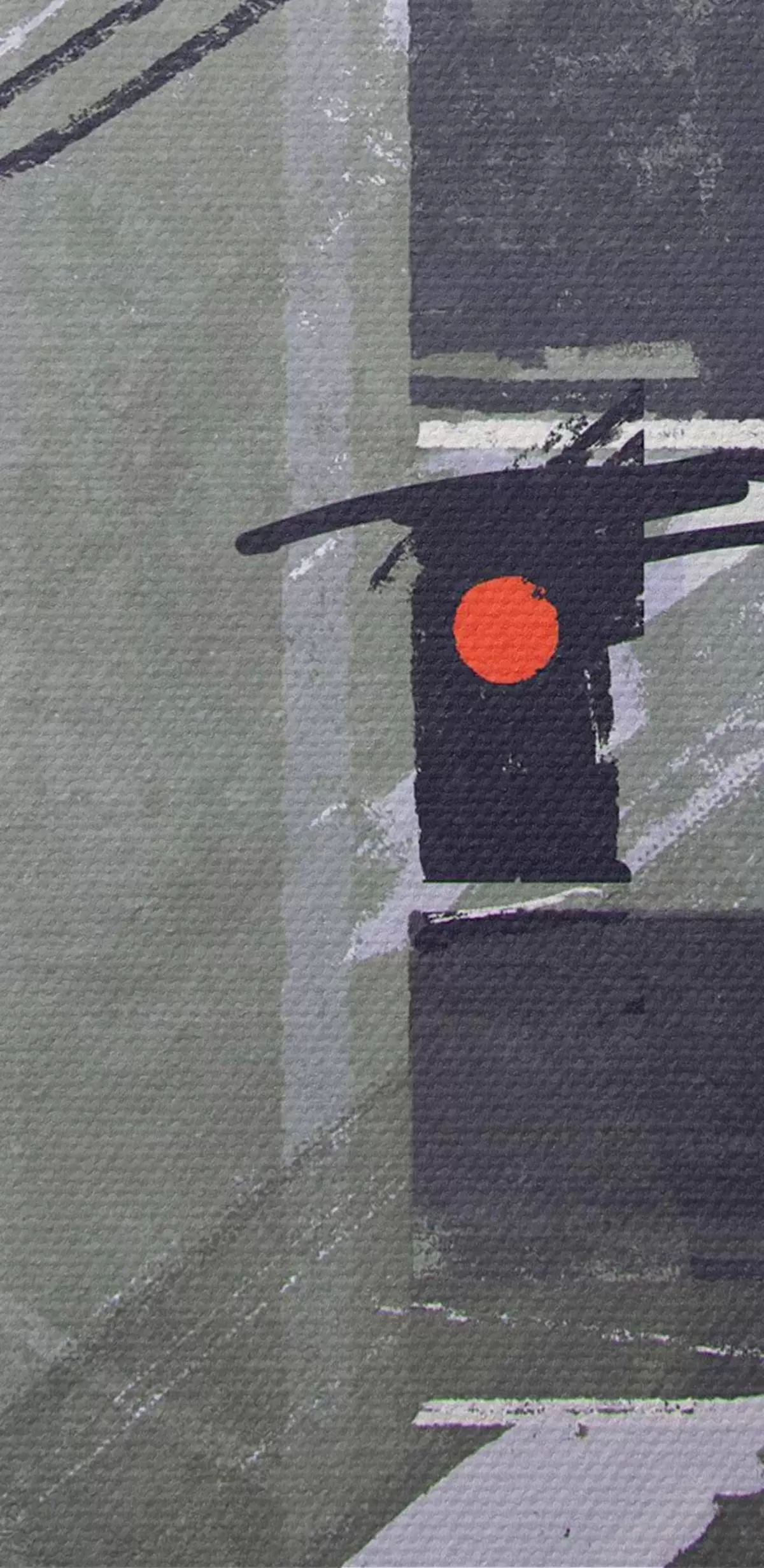 Het schilderij kan direct na ontvangst worden opgehangen. Het schilderij wordt opgespannen op een 2 cm breed houten spieraam.