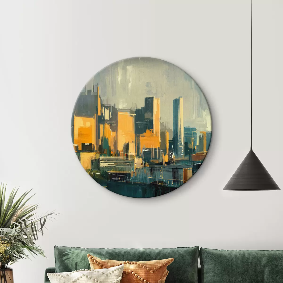 Ronde schilderijen Panorama van de stad met hoge gebouwen Nr r37102