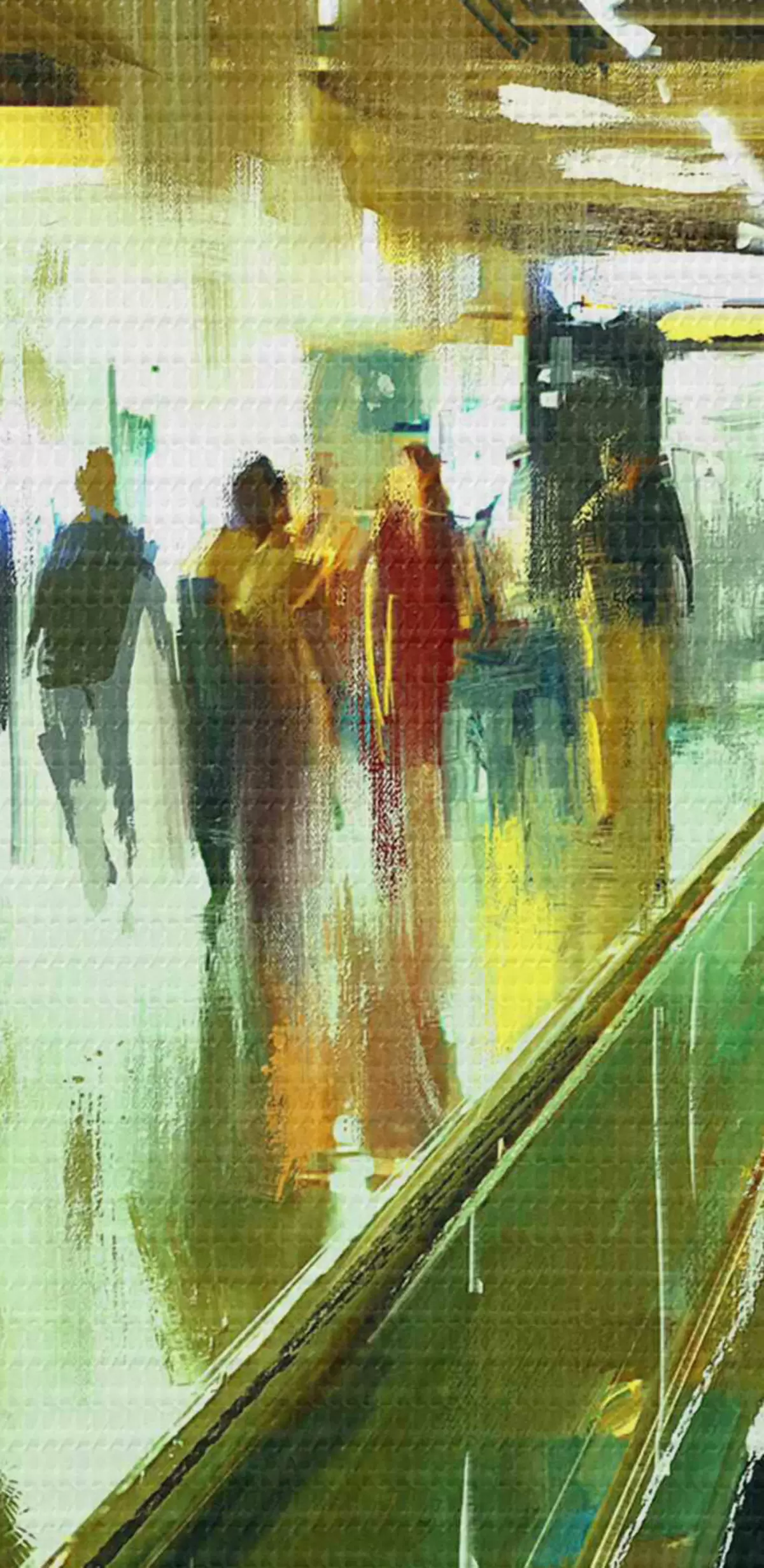 Ronde schilderijen Een groep mensen op een roltrap Nr r37103
