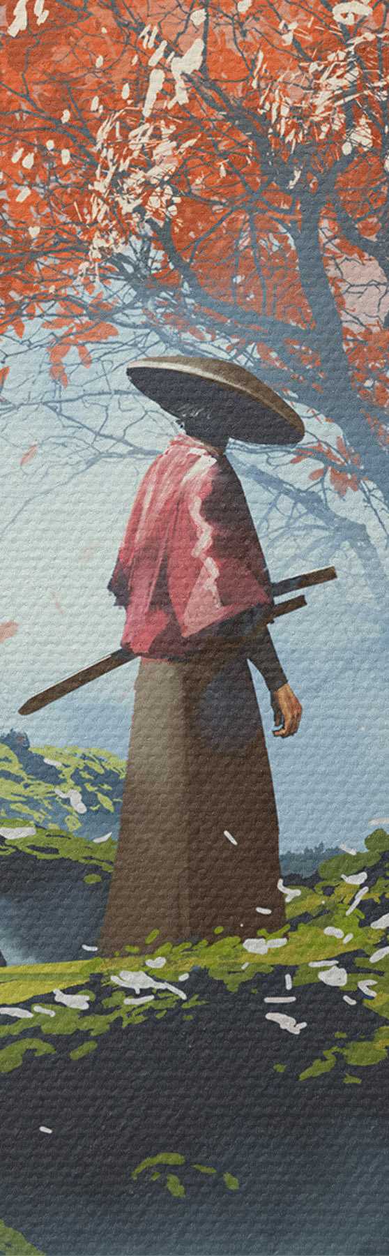 Ronde schilderijen Een eenzame Japanse samoerai r37105