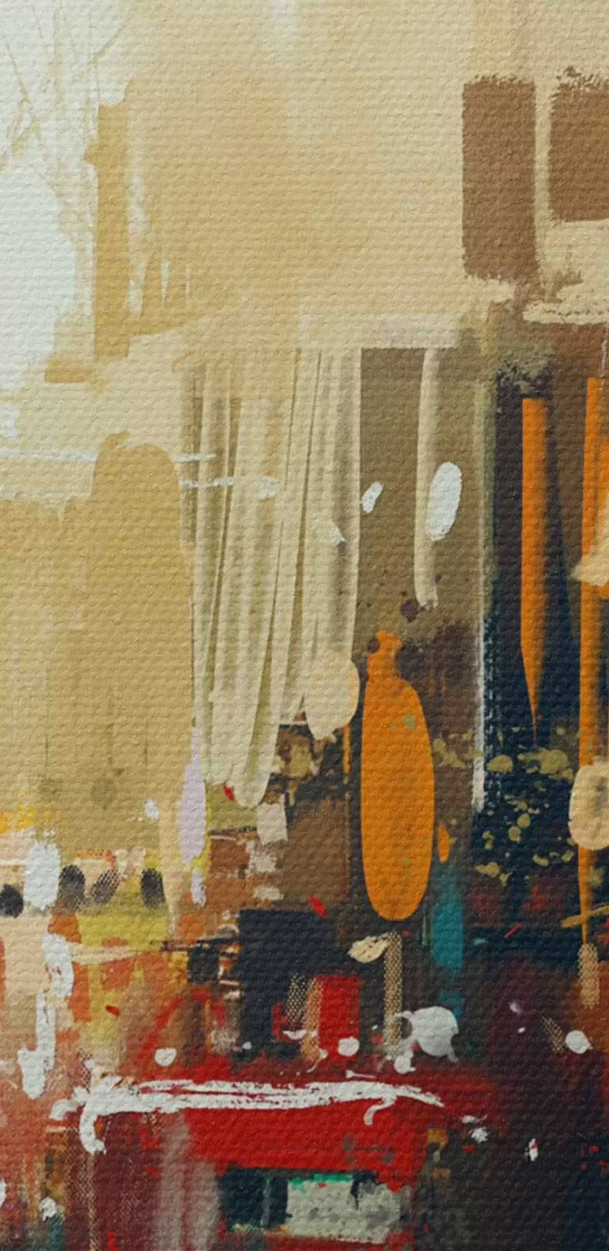 Het schilderij kan direct na ontvangst worden opgehangen. Het schilderij wordt opgespannen op een 2 cm breed houten spieraam.