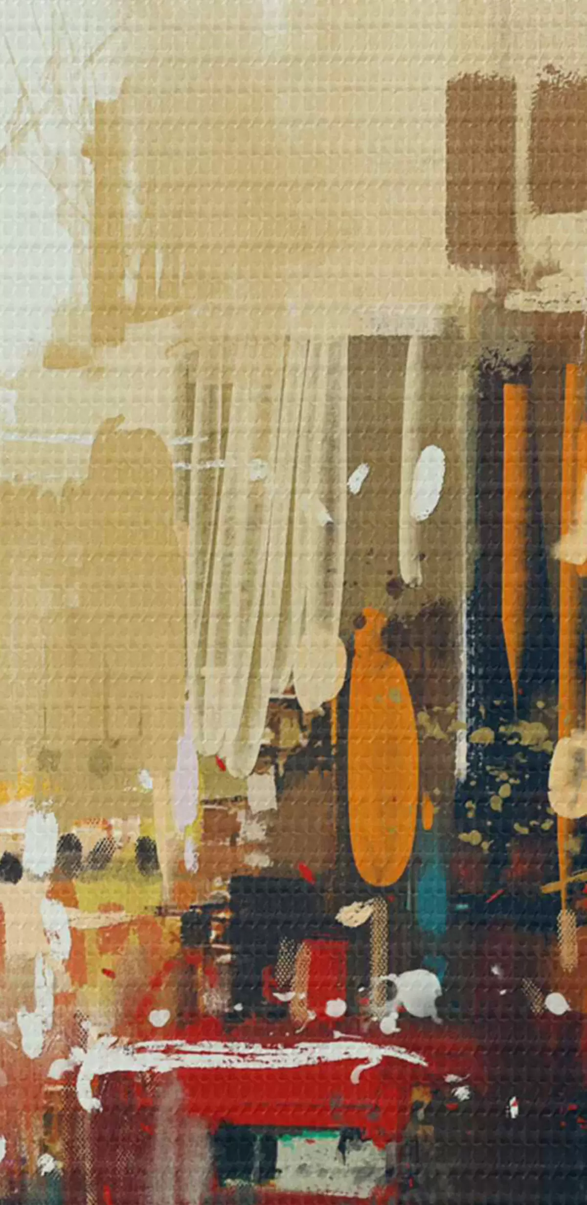 De fijne weving van draden op dit doek lijkt op het oppervlak van professionele schildersdoeken.