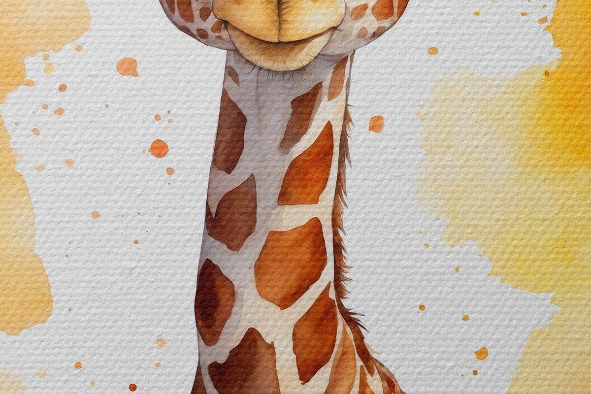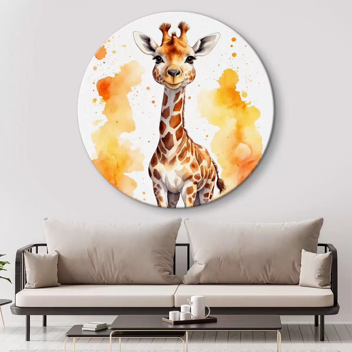 Ronde schilderijen Kleine giraffe op witte achtergrond Nr r37117