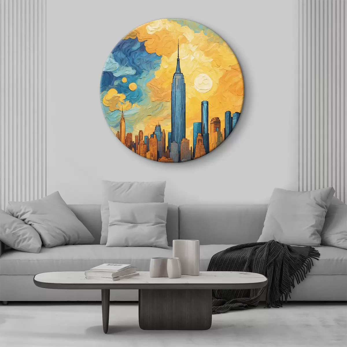 Ronde schilderijen Een stedelijk panorama schilderen Nr r37121