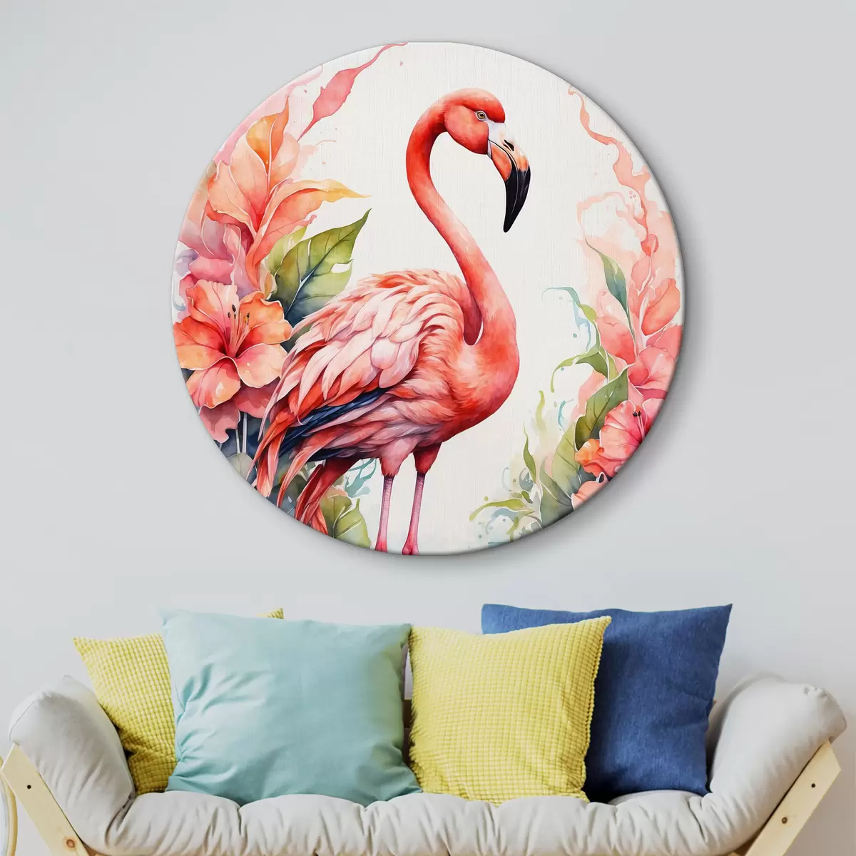 Ronde schilderijen Flamingo met bloemen in aquarel Nr r37125