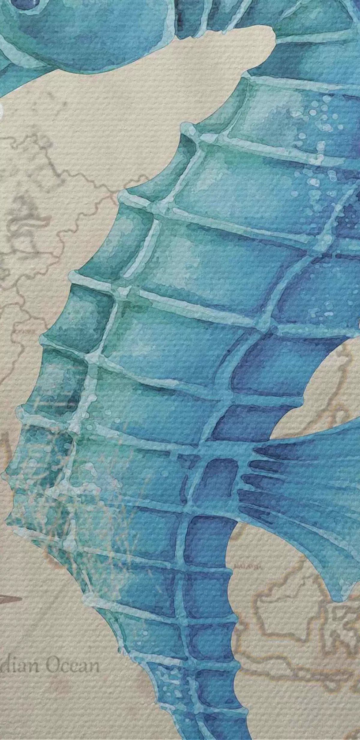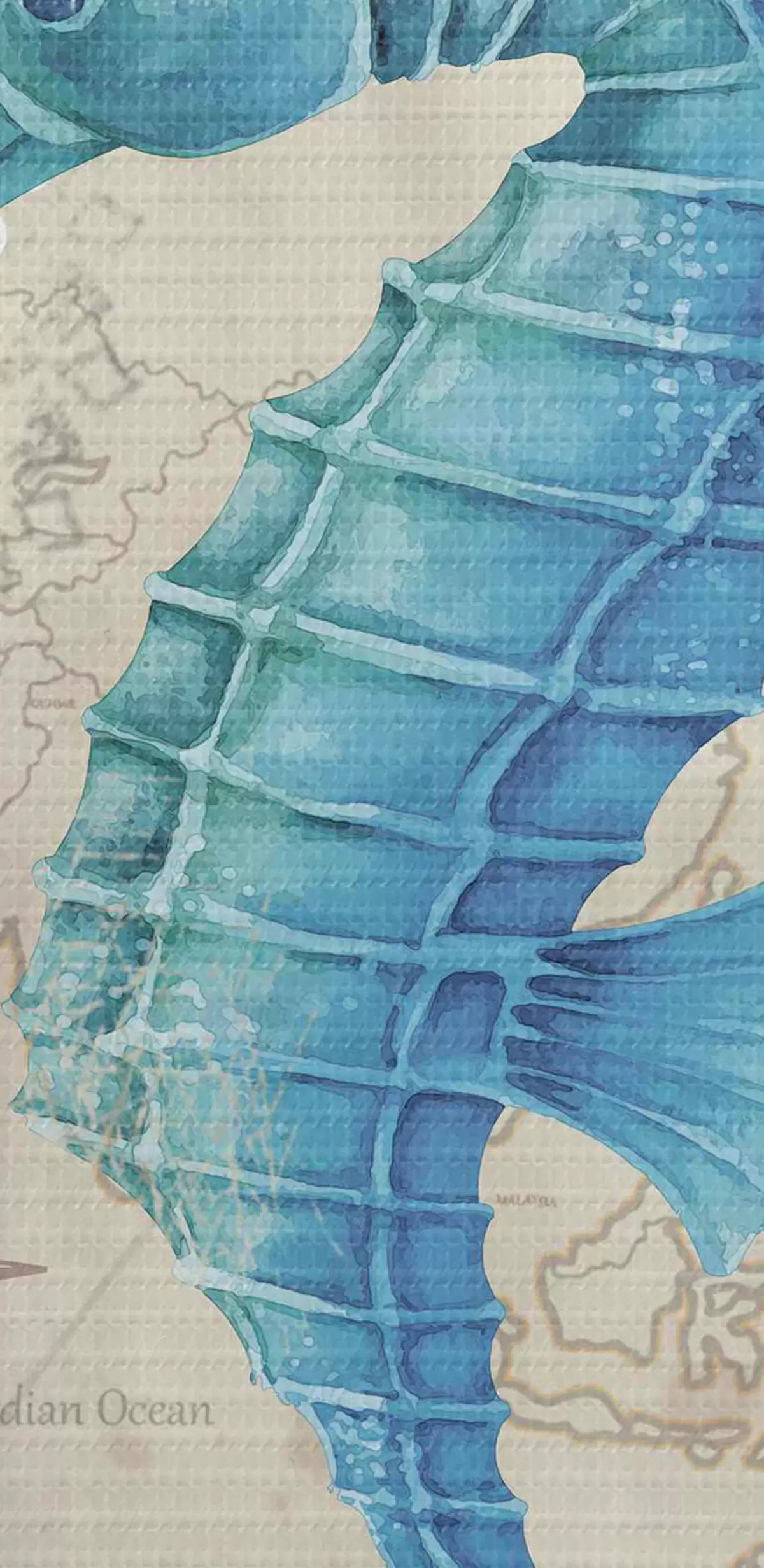 Ronde schilderijen Zeepaard en zeewier op de kaart r37152