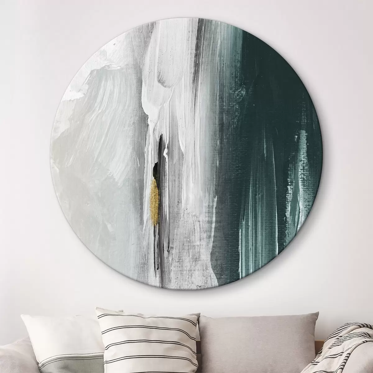 Ronde schilderijen Abstract schilderij met witte en groene verf Nr r37158