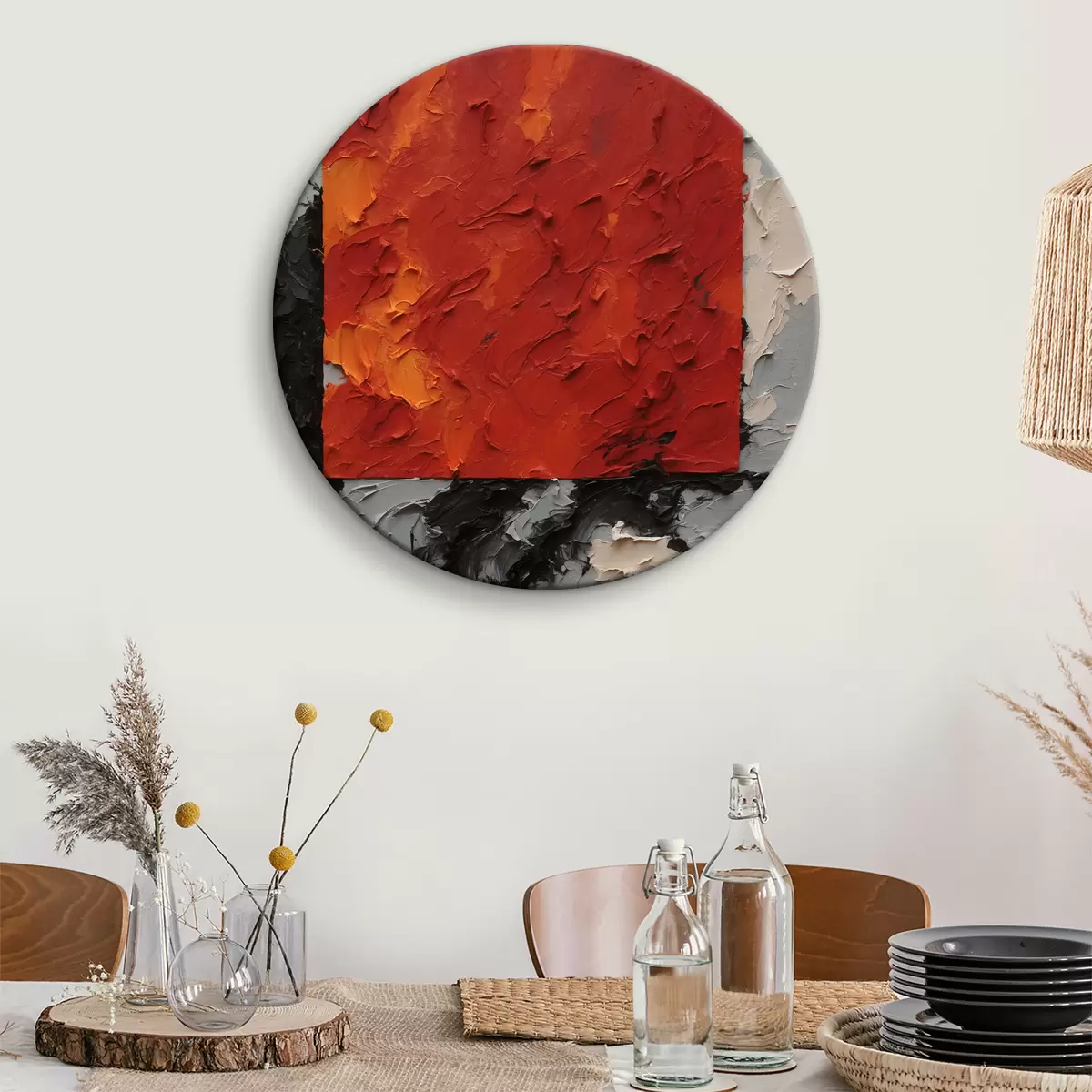 Ronde schilderijen Abstract olieverfschilderij met rood vierkant Nr r37167