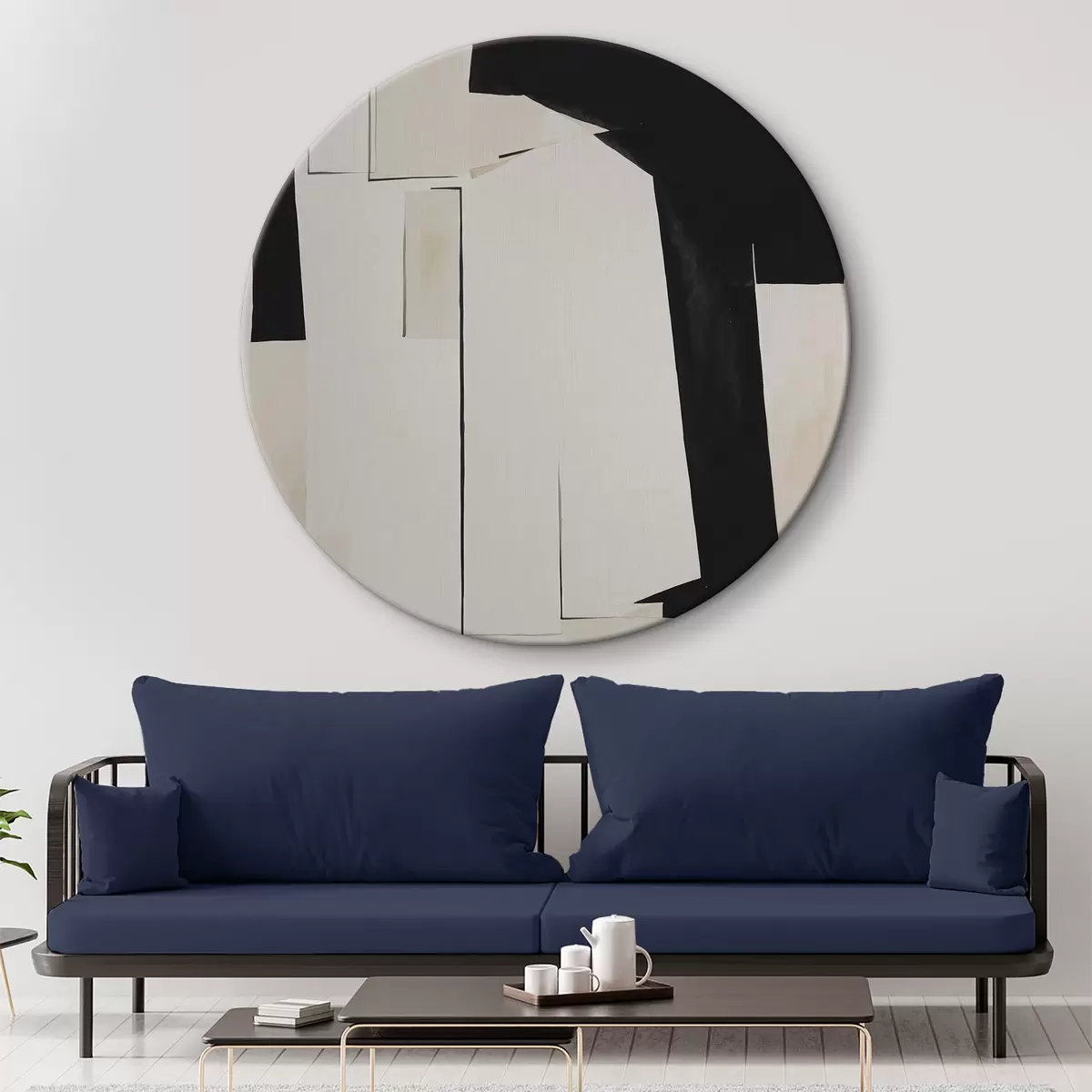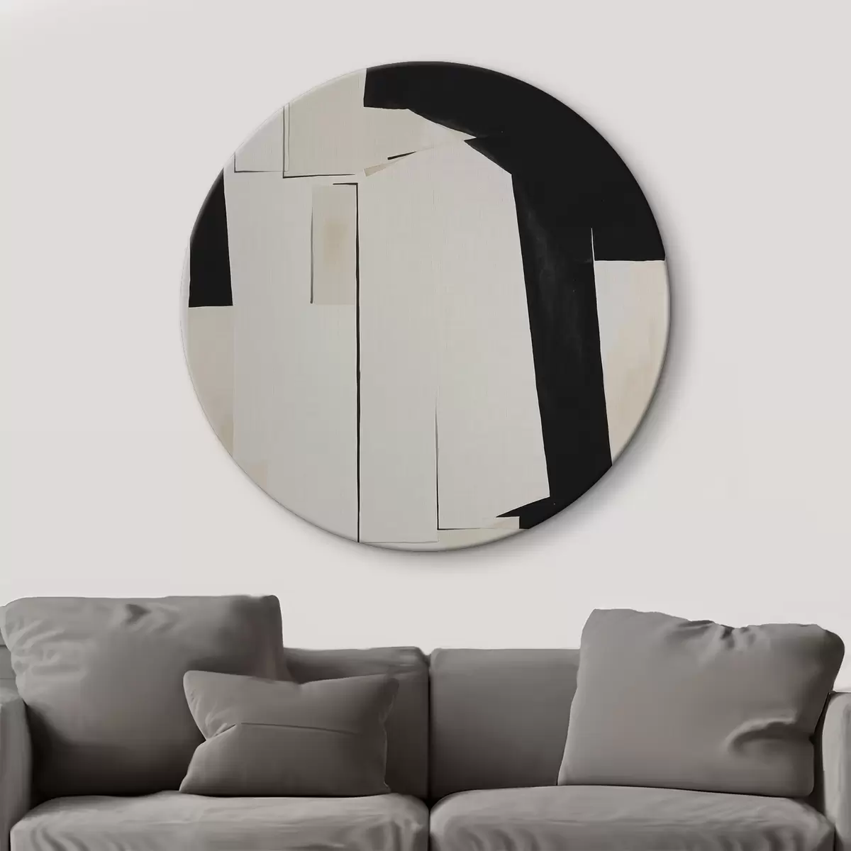 Ronde schilderijen Zwart-wit aquarel abstractie r37169
