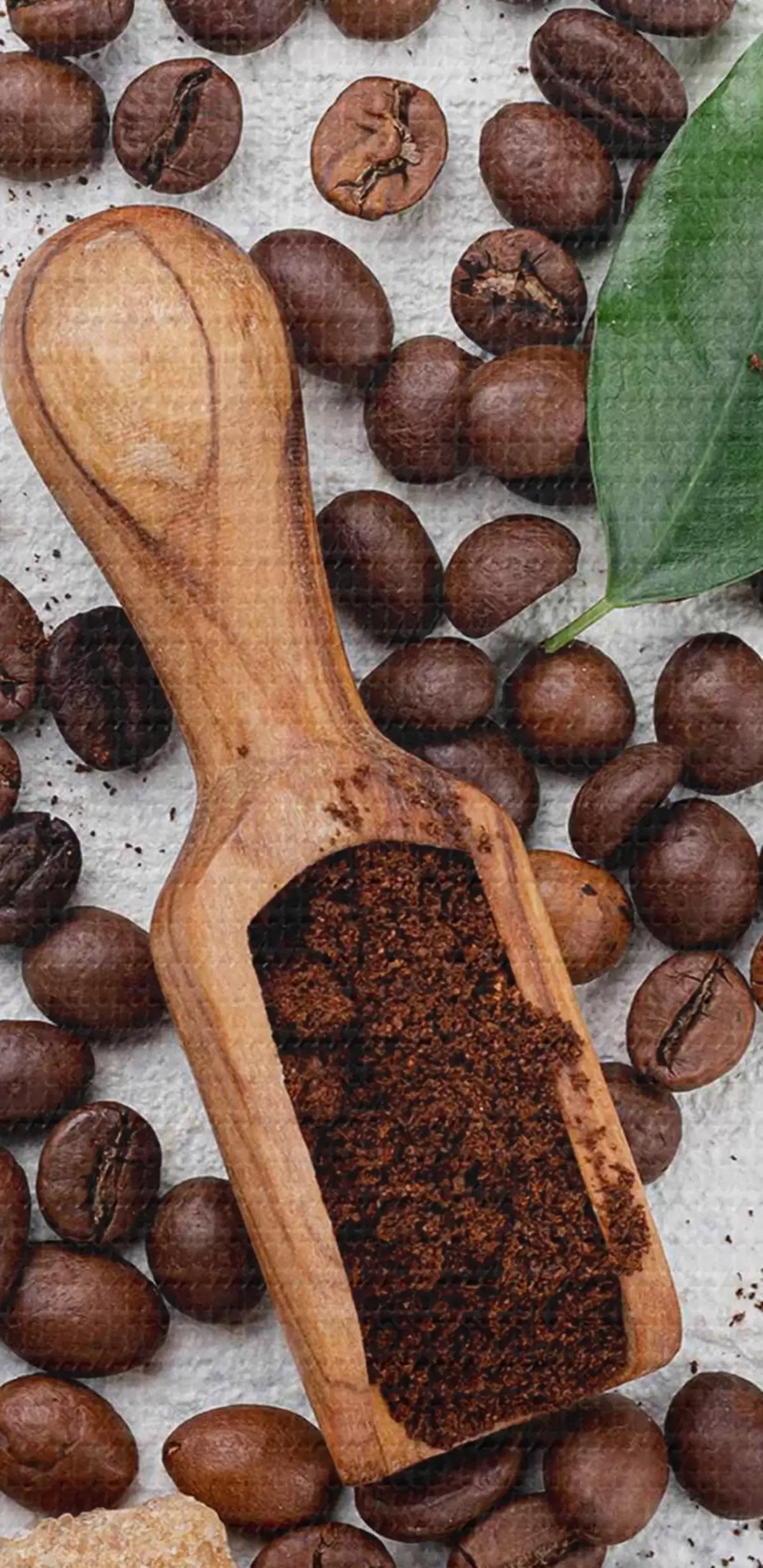 Ronde schilderijen Een lepel met koffiebonen en suiker erop r37178