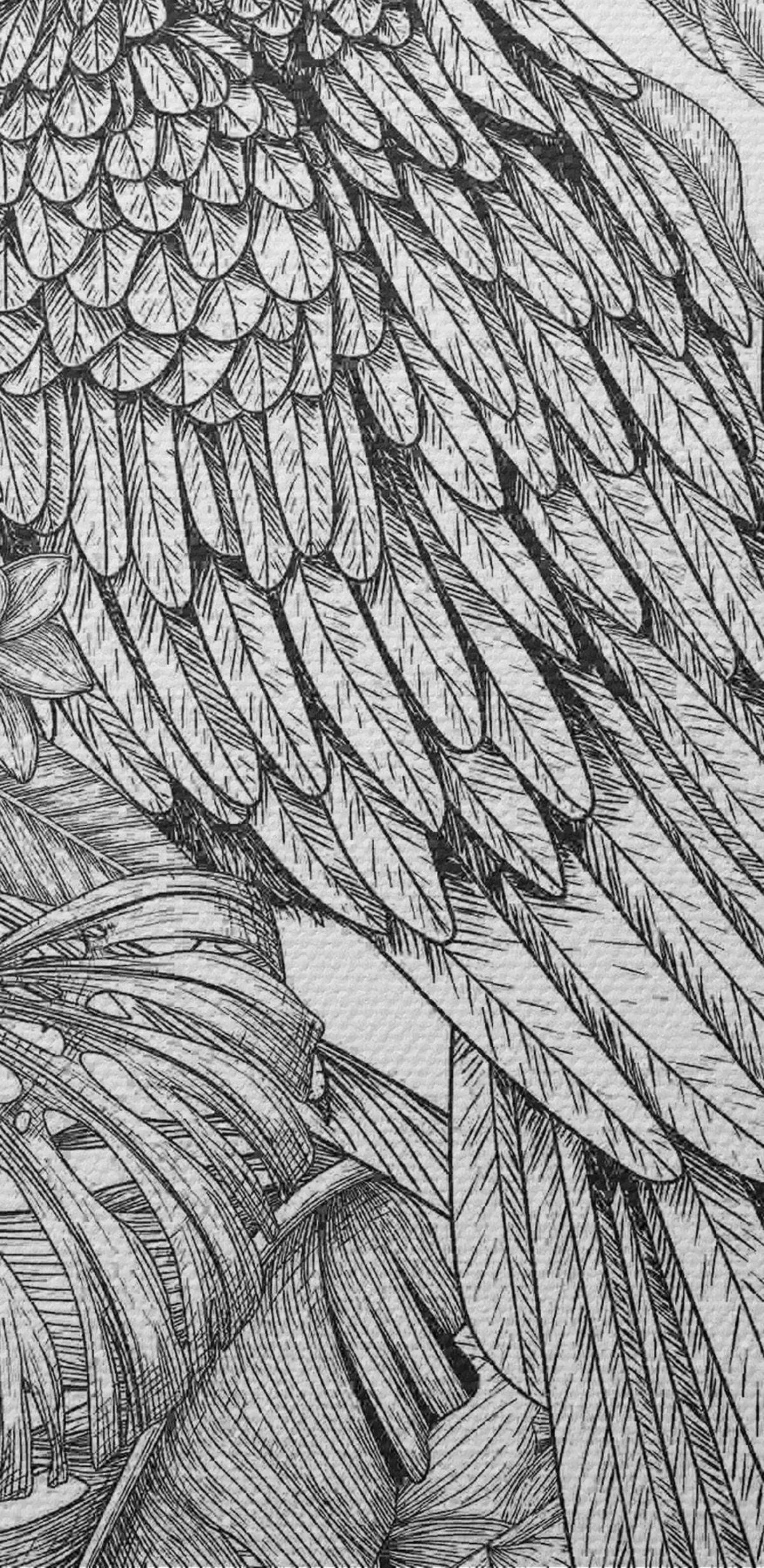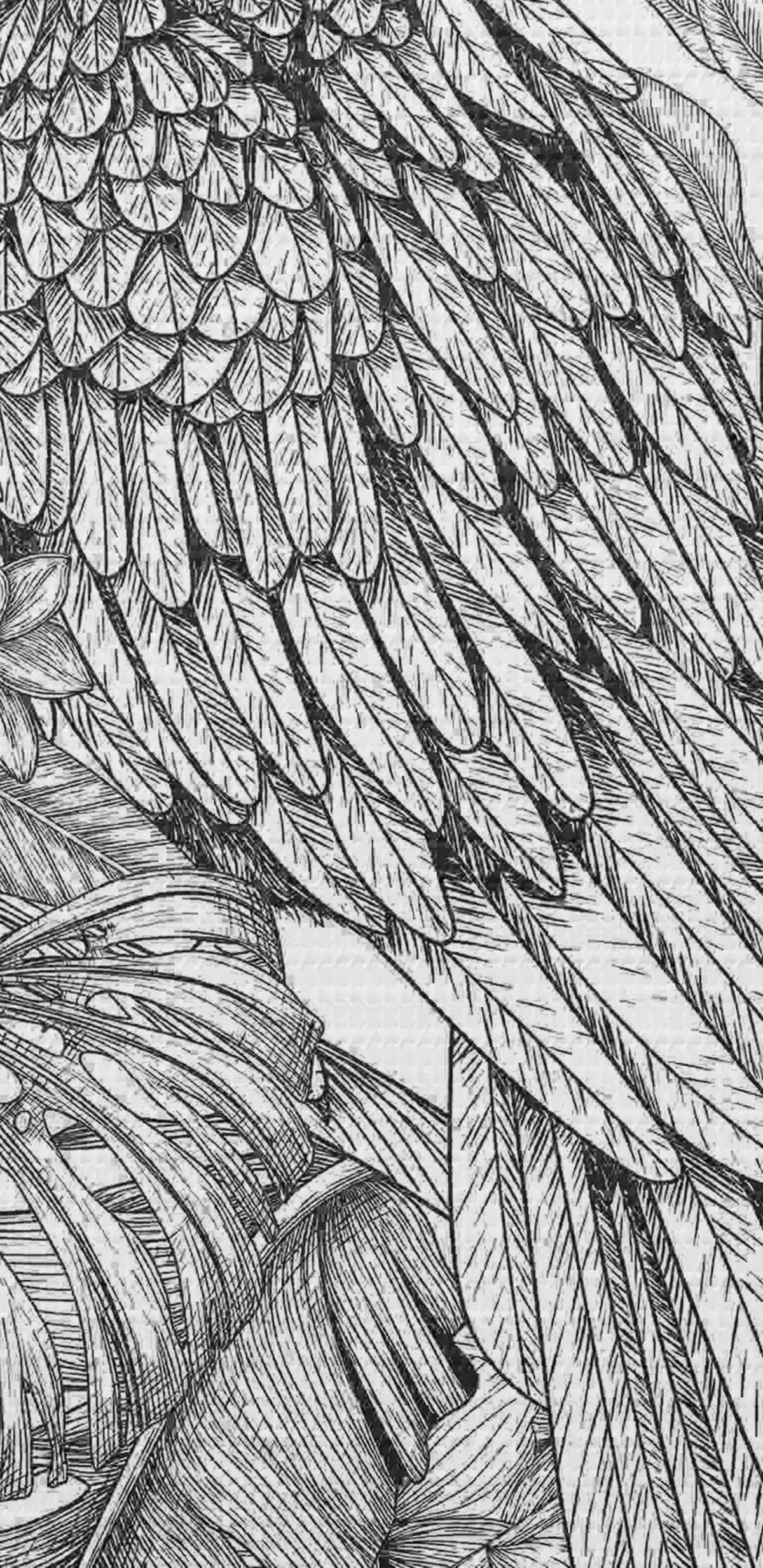 Om het doek op te spannen op spielatten zonder de afbeelding te beschadigen, gebruiken we gespiegeld beeld.
