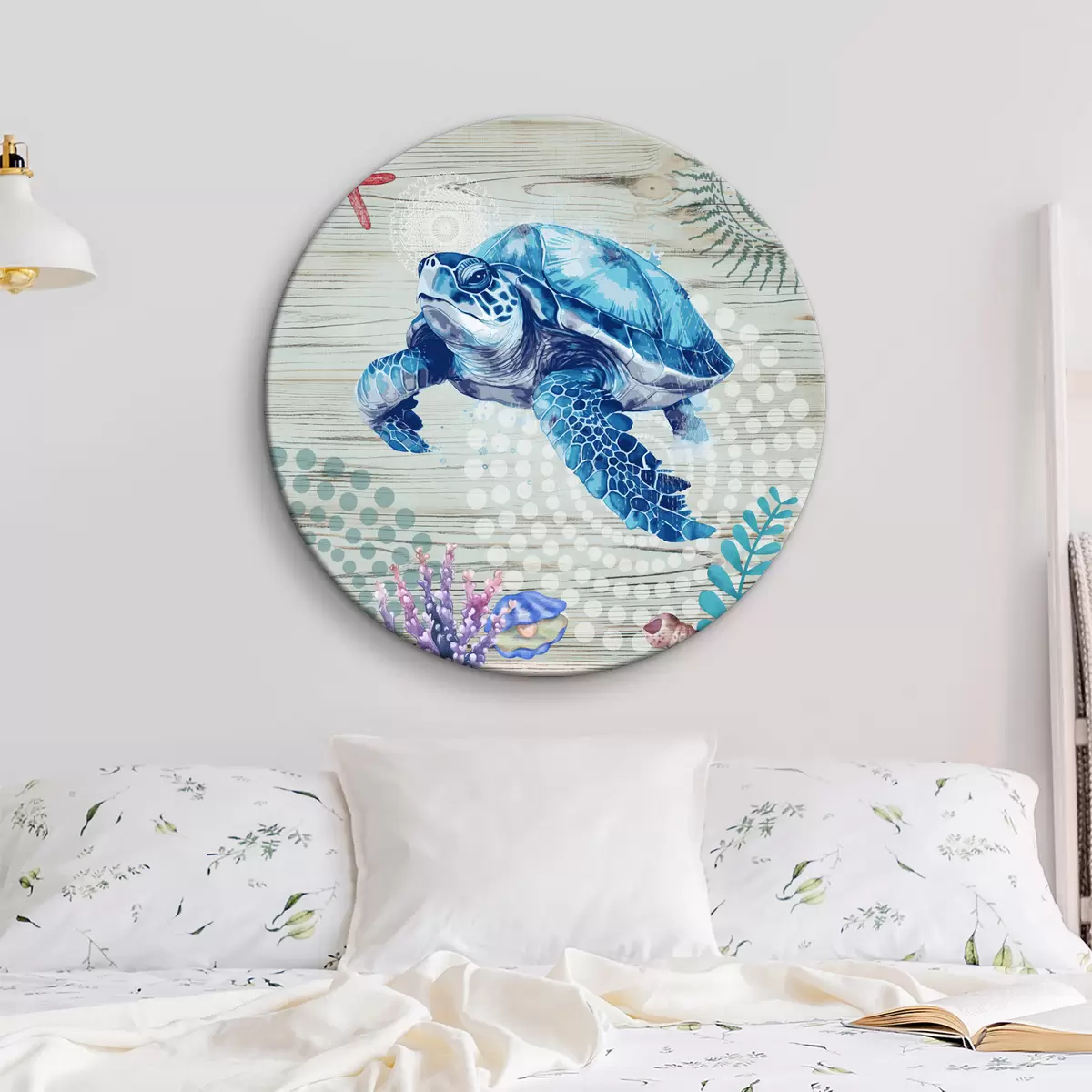 Ronde schilderijen Mariene abstractie met schildpad r37239