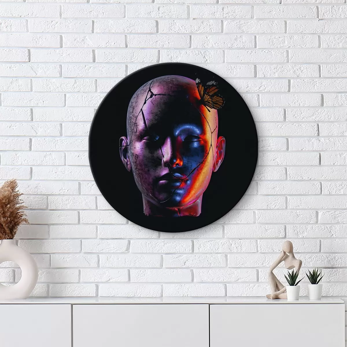 Ronde schilderijen Een kleurrijk gezicht verdeeld door duisternis Nr r37289