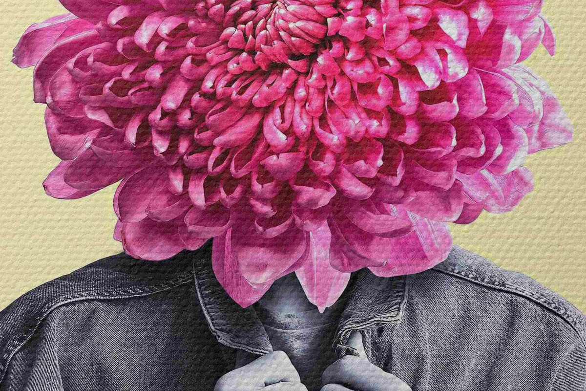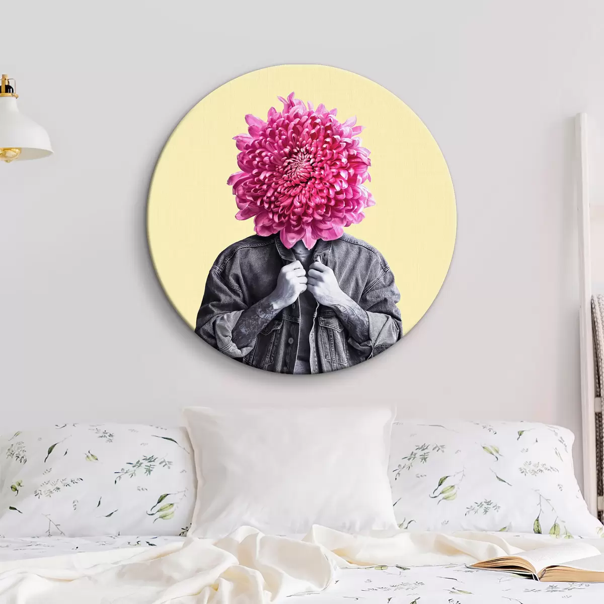 Ronde schilderijen Persoon met een bloemhoofd Nr r37294