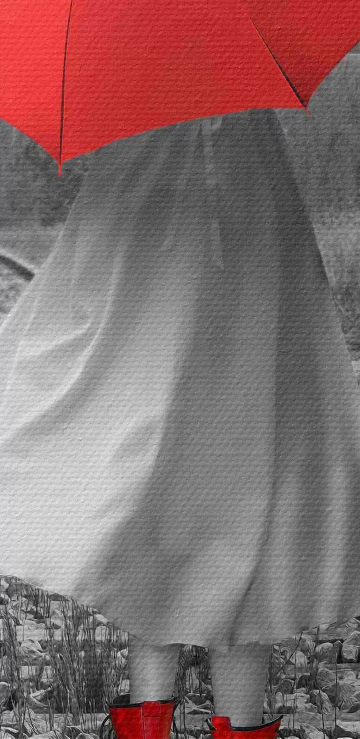 Ronde schilderijen Persoon met een rode paraplu op het spoor Nr r37301