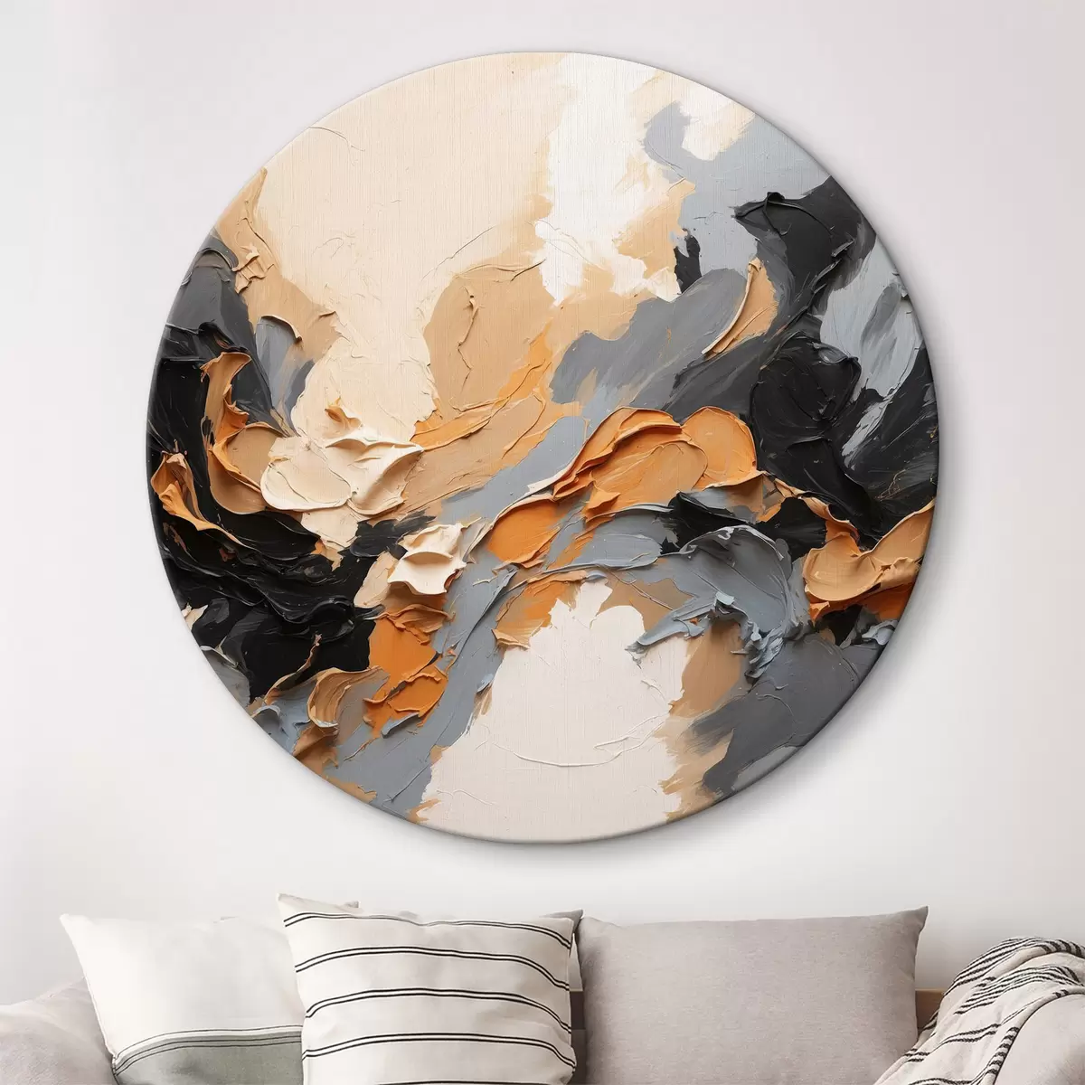 Ronde schilderijen Abstract olieverfschilderij met zwarte, blauwe en beige verf r37328