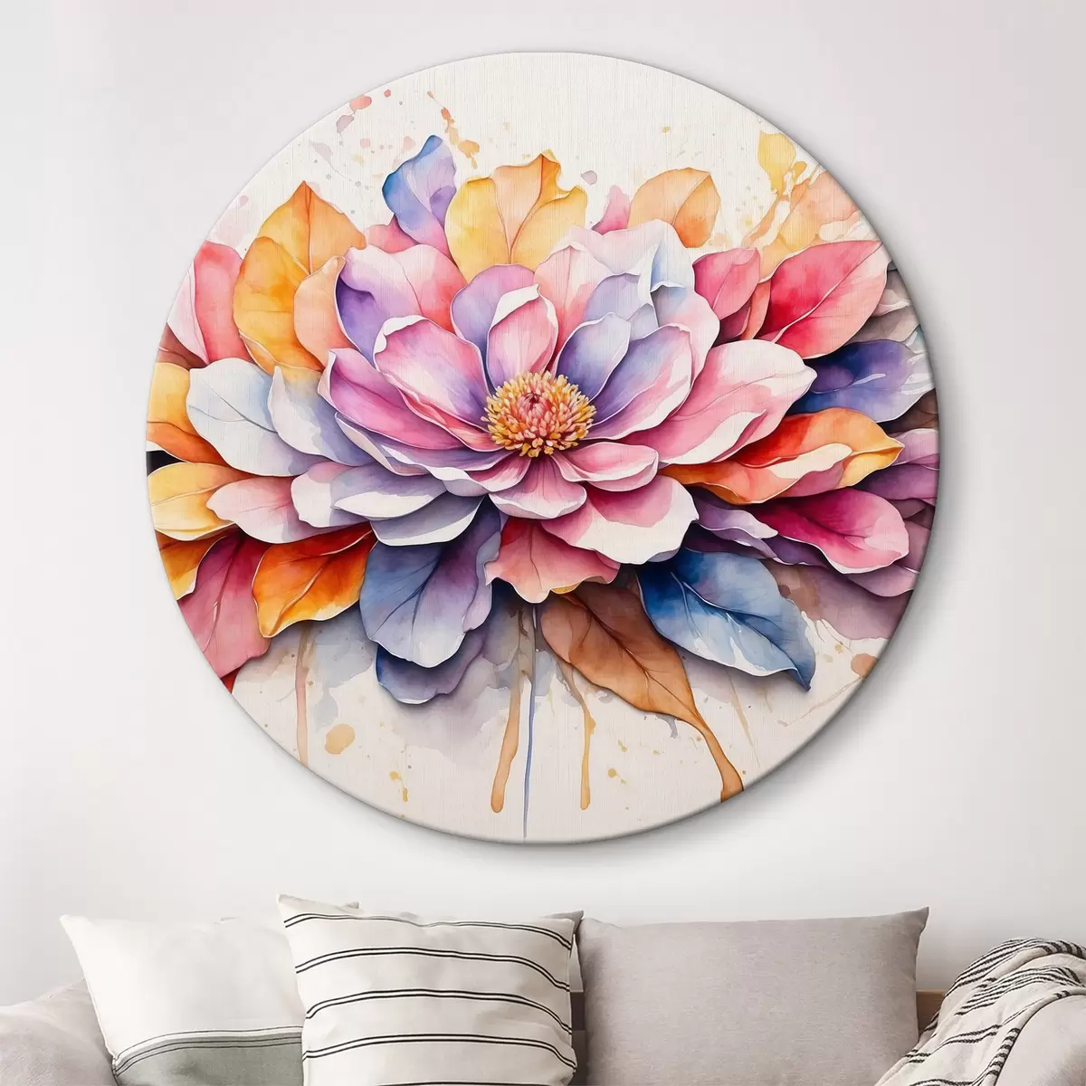 Ronde schilderijen Bloem met aquarelverf en veelkleurige bloemblaadjes Nr r37333