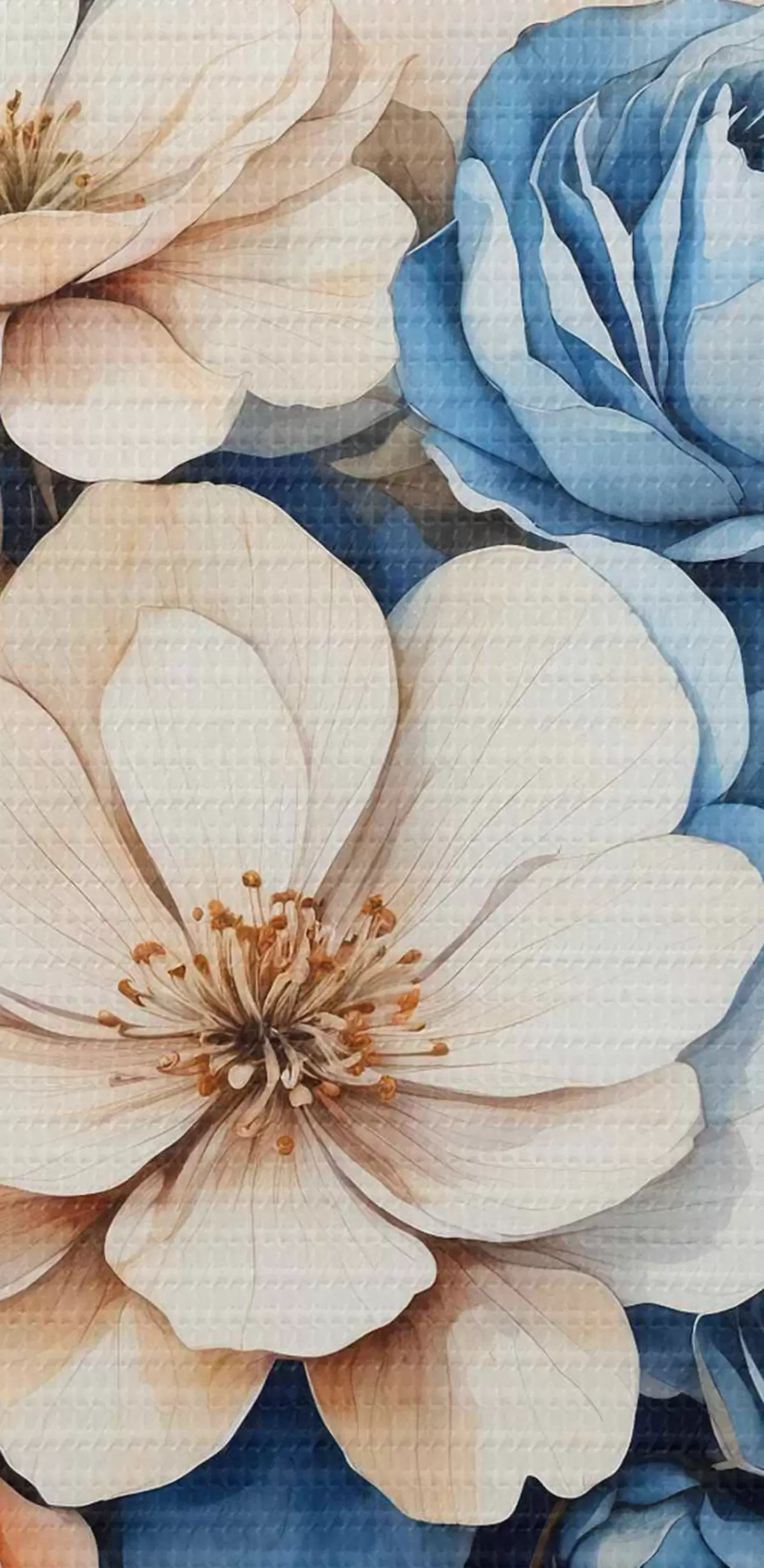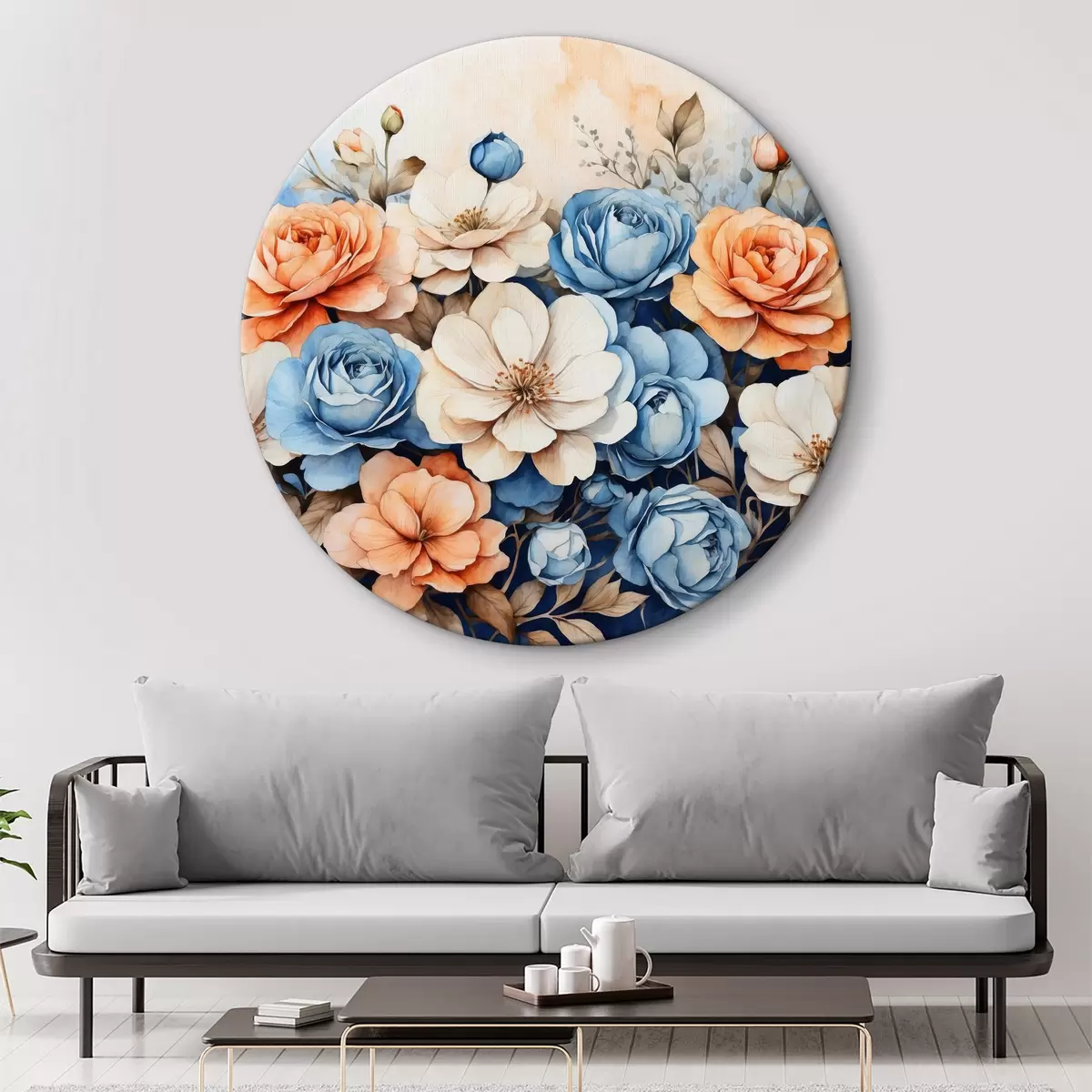 Ronde schilderijen Afbeelding van bloemen op een blauwe achtergrond Nr r37335