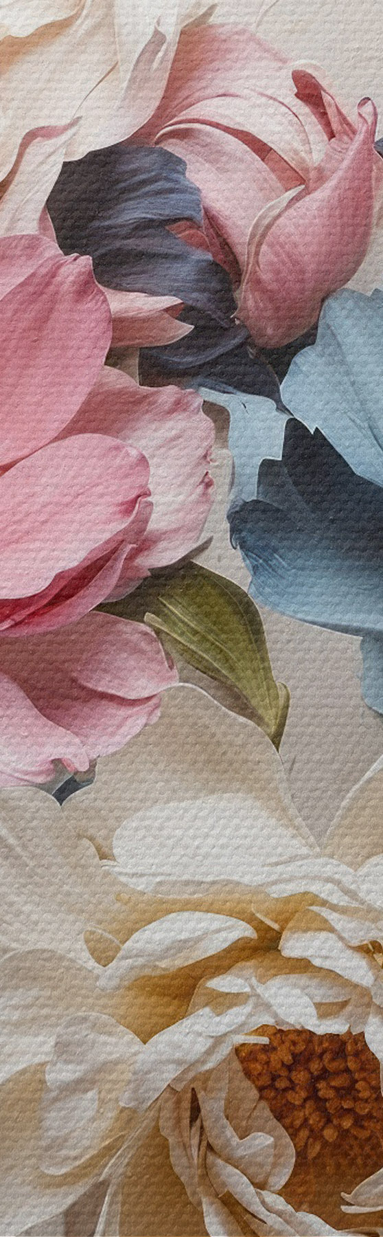 Er zijn drie soorten materiaal te bestellen: Economic Canvas - een dicht en duurzaam materiaal voor digitaal printen, identiek aan schildersdoek, waterdicht oppervlak, realistische weergave van details, materiaal met gemiddelde korrel. Premium Canvas - de textuur lijkt op die van schildersdoek (verweven kleine draden). Zachte, gedetailleerde reproductie van de afbeelding op een mat oppervlak. Eco-Premium - hoogwaardige 100% katoenen stof. Dankzij de natuurlijke katoenvezels is het materiaal duurzaam en slijtvast. Uitstekende kleurweergave en detail.