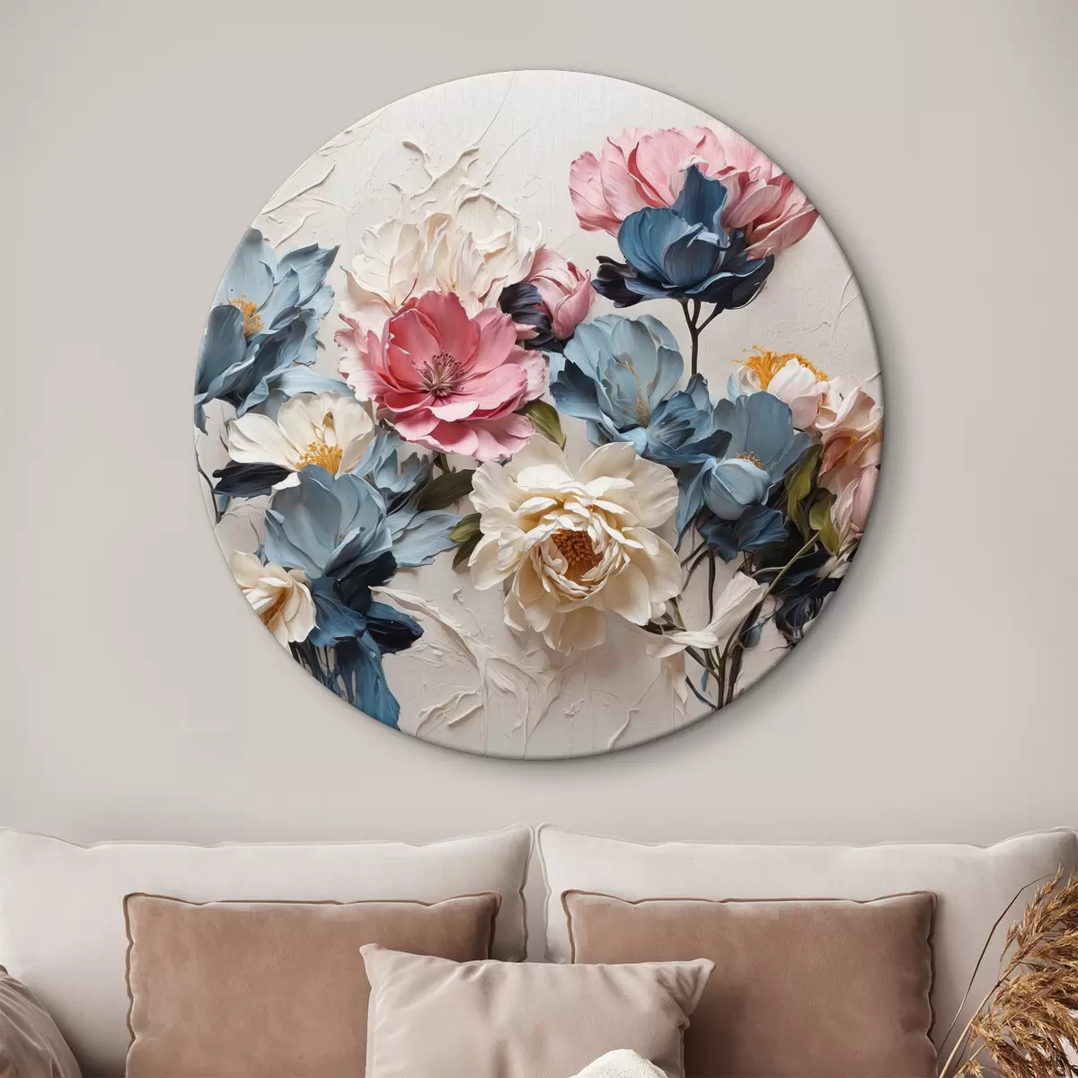 Ronde schilderijen Volumineuze heldere bloemen r37336