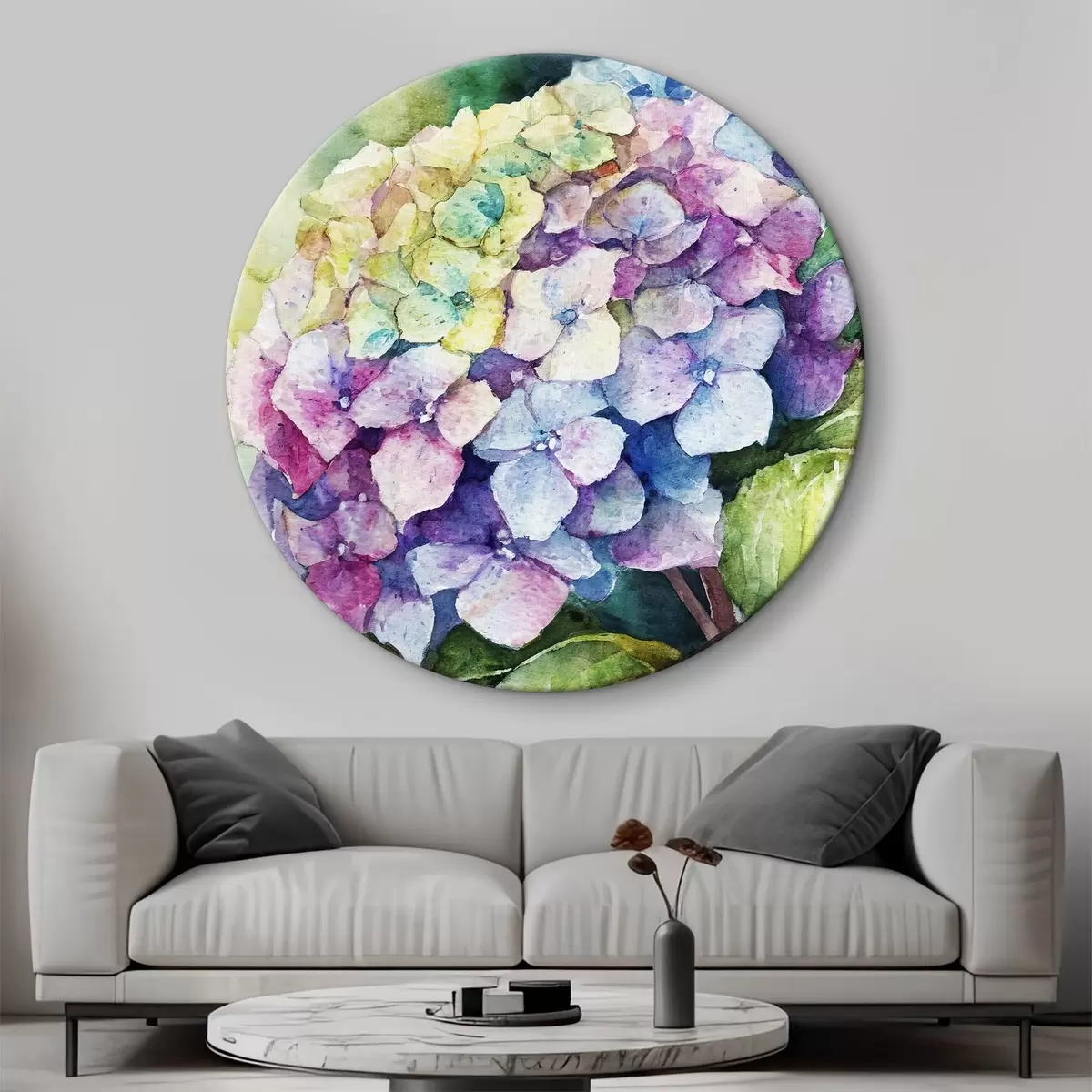 Ronde schilderijen Aquarel hortensia, bloemenillustratie, natuurlijke kleuren Nr r37343