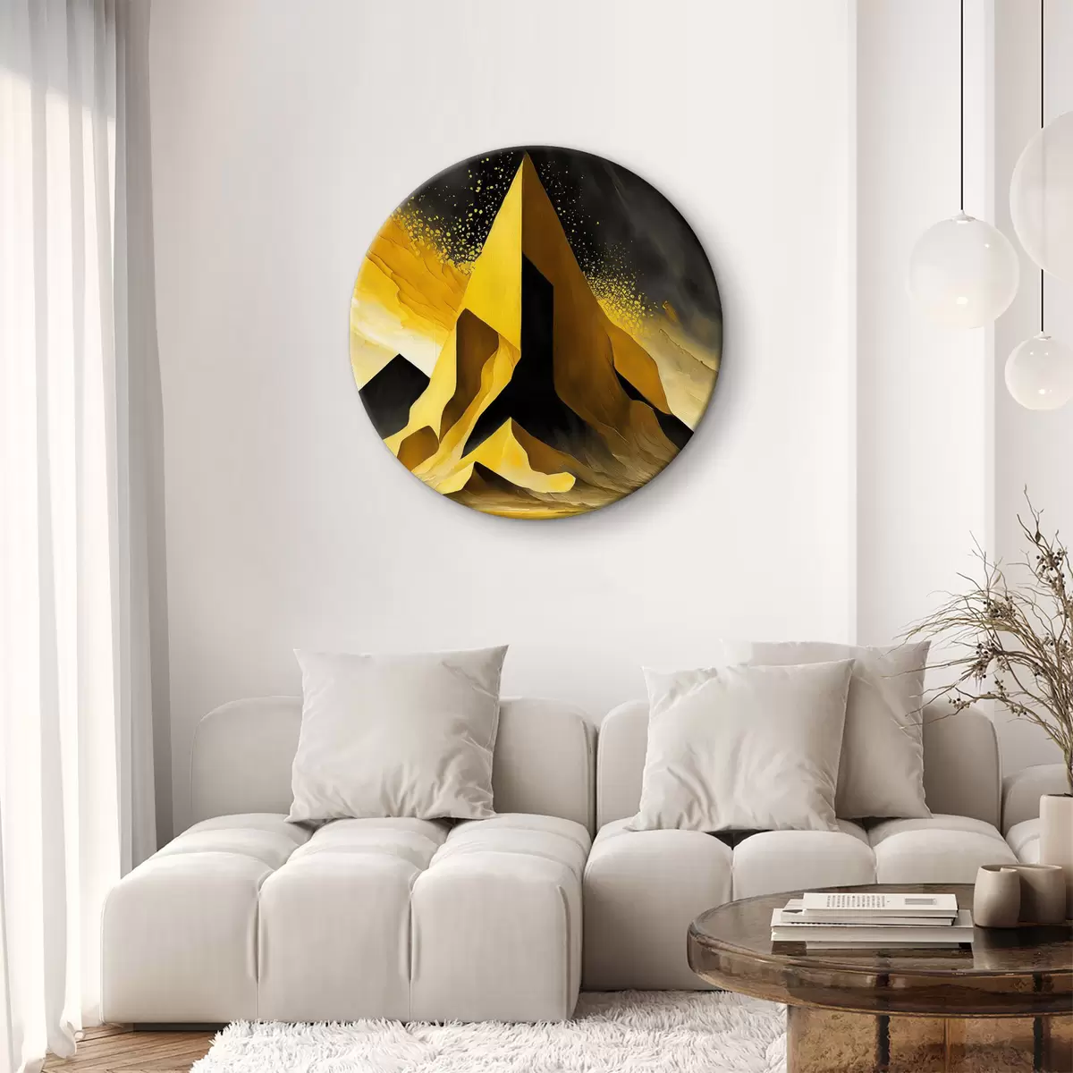 Ronde schilderijen Geometrische kunst, kosmische abstractie, futuristisch, woestijn met rotsen r37365