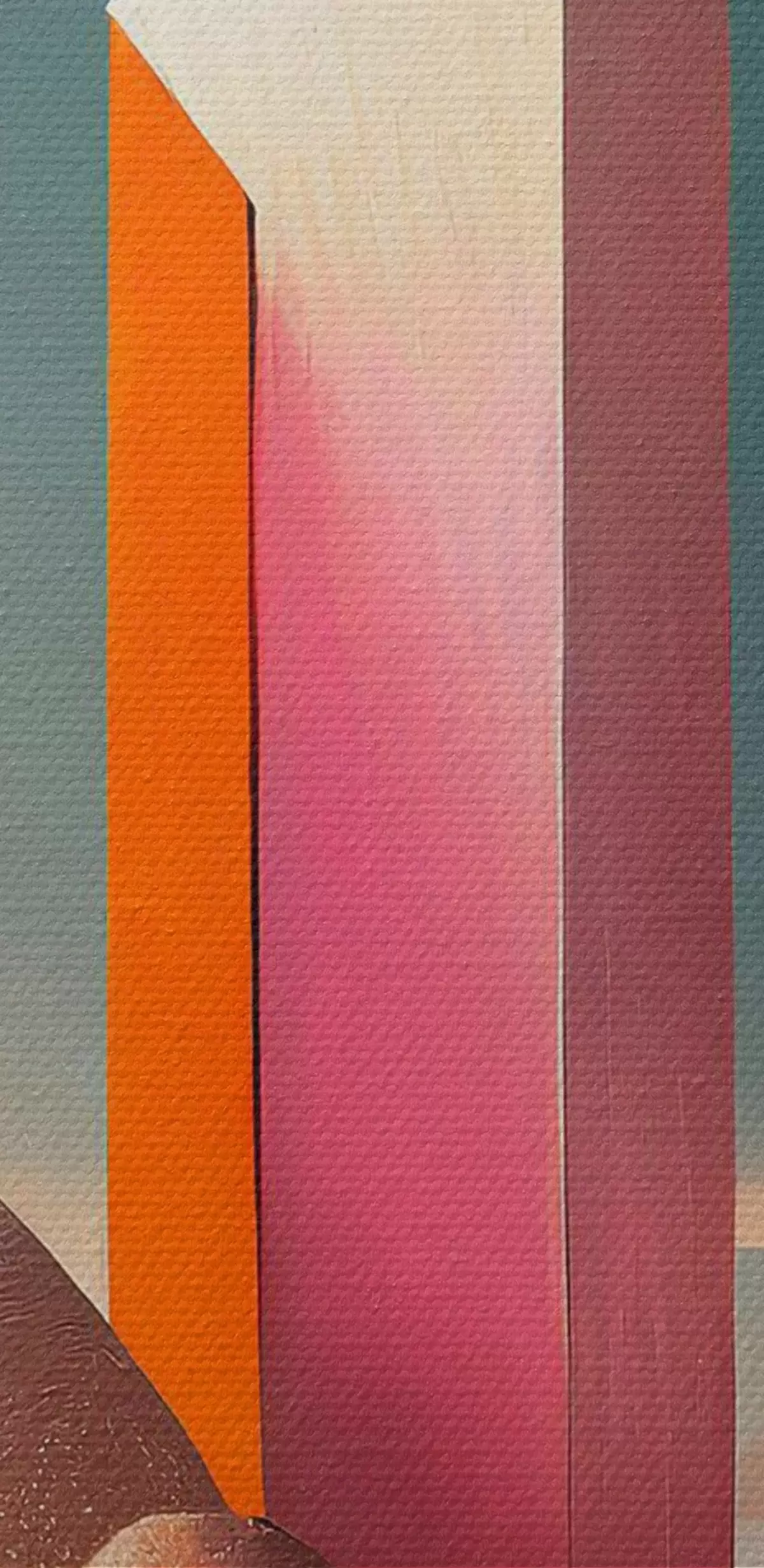 Ronde schilderijen Woestijnlandschap met toren en geometrische vormen Nr r37368