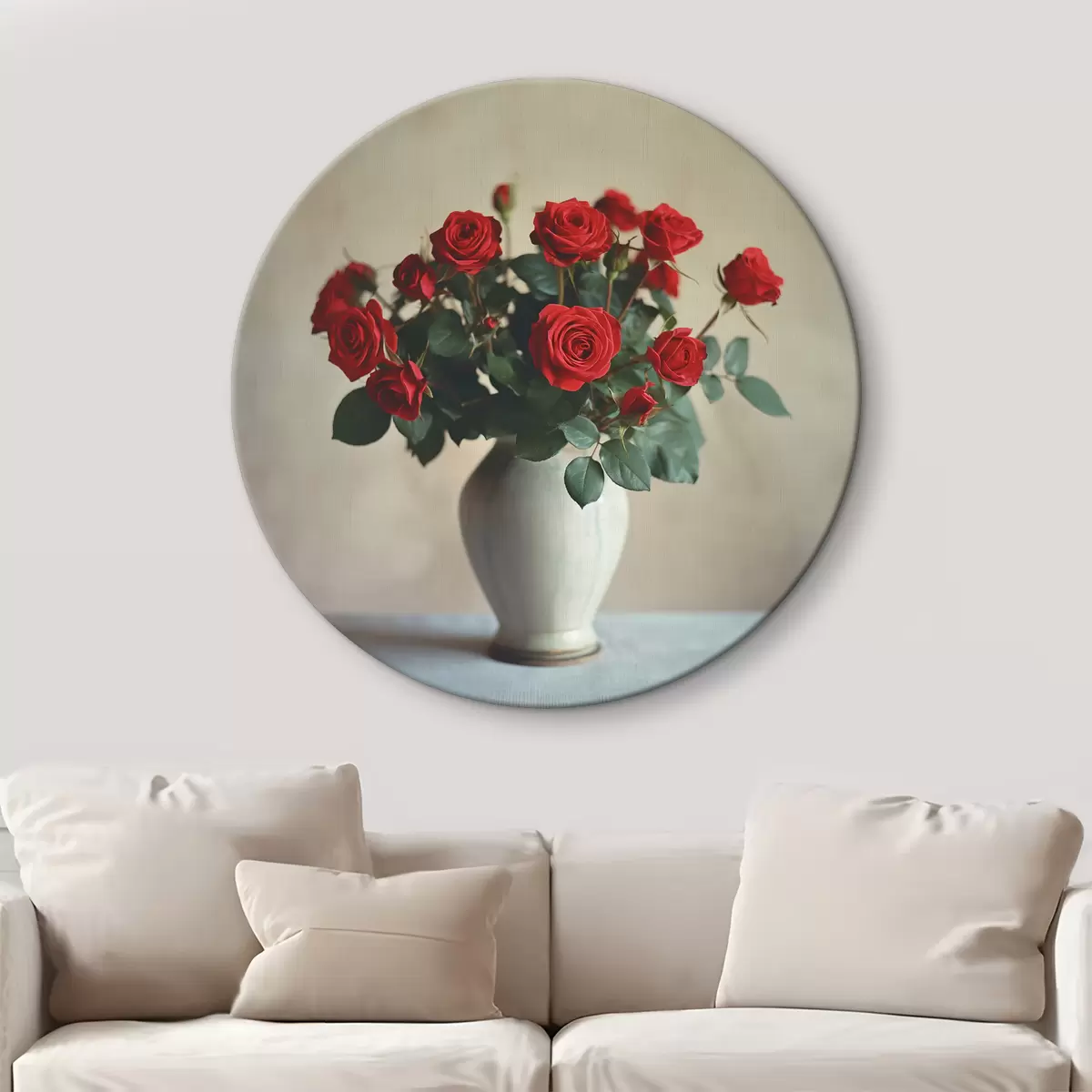 Ronde schilderijen Vaas met rode rozen Nr r37377