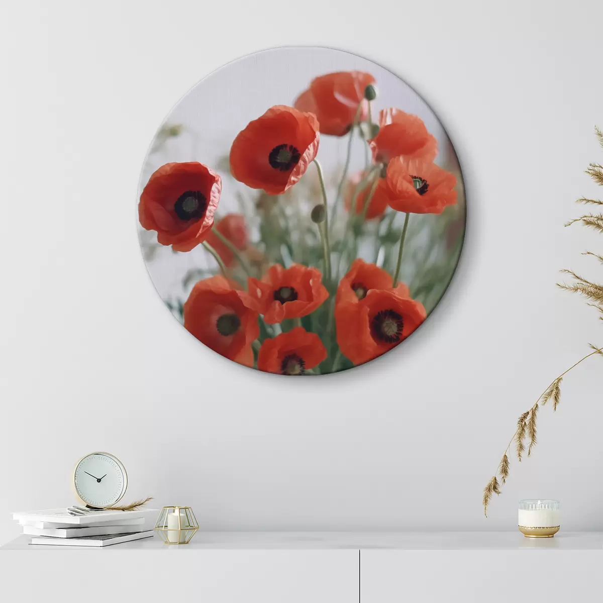 Ronde schilderijen Boeket rode bloemen Nr r37380