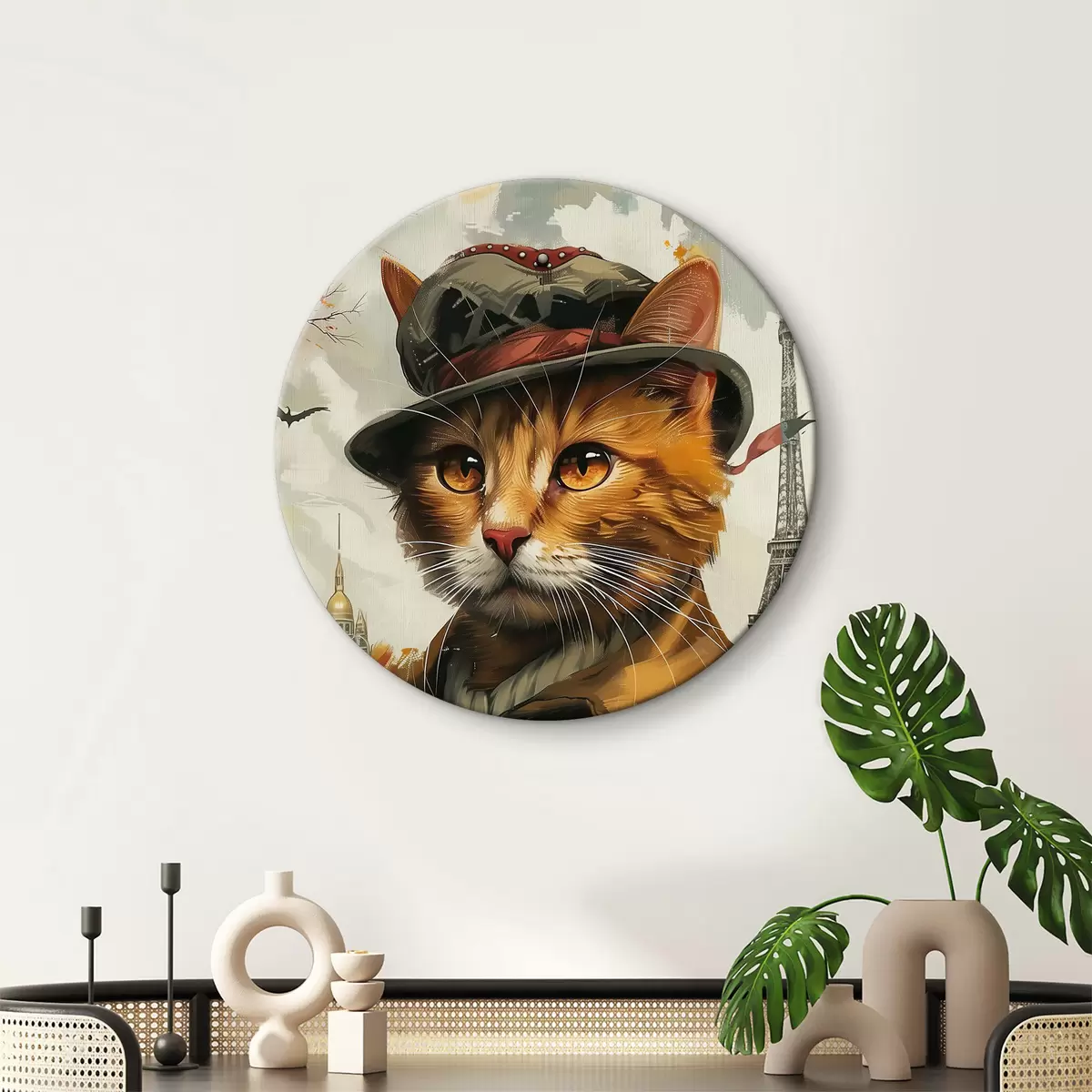 Ronde schilderijen Kat met hoed en jas Nr r37457