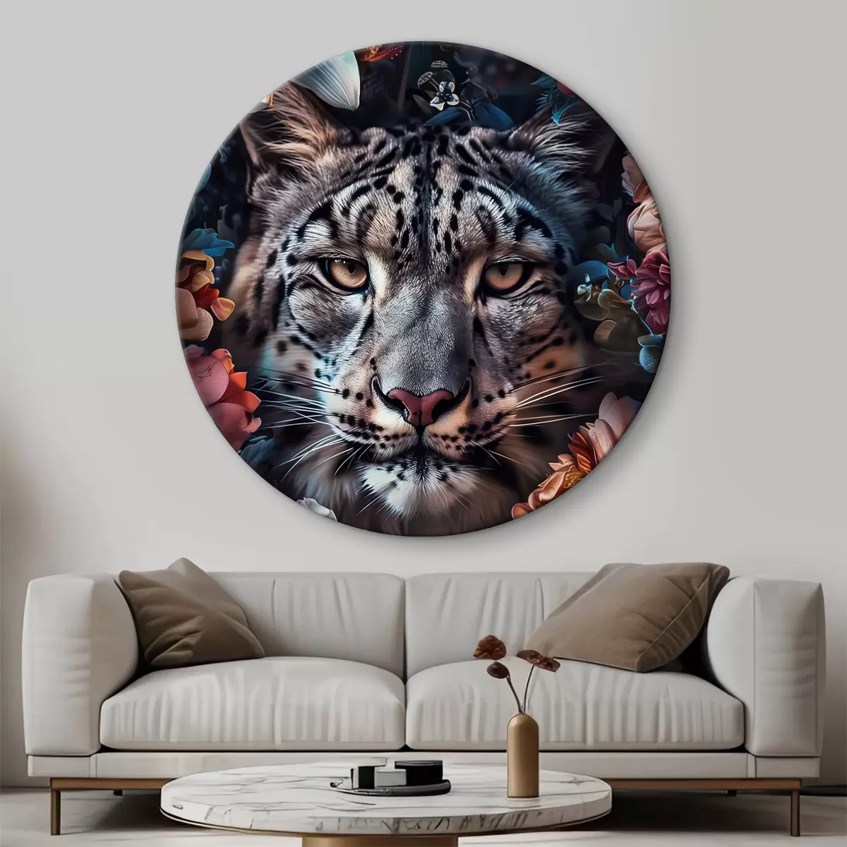 Ronde schilderijen Tijger in bloemen Nr r37463