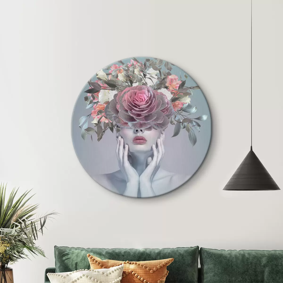 Ronde schilderijen Vrouw met bloemen op haar hoofd r37479
