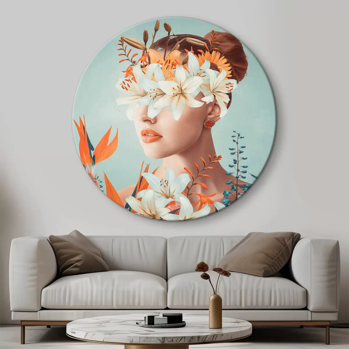 Ronde schilderijen Vrouw met bloemen rond haar ogen Nr r37480