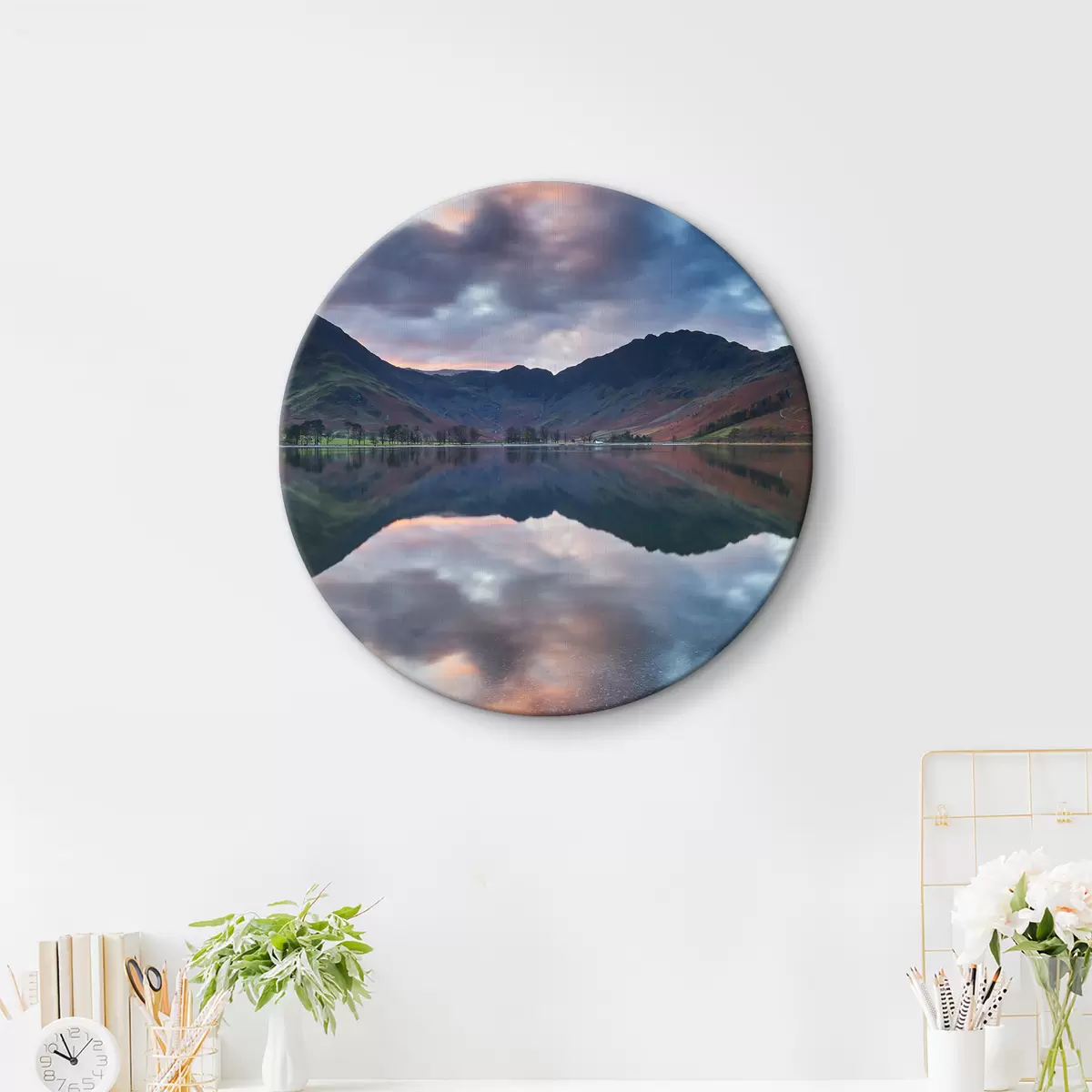 Ronde schilderijen Meer met bergen op de achtergrond Nr r37533