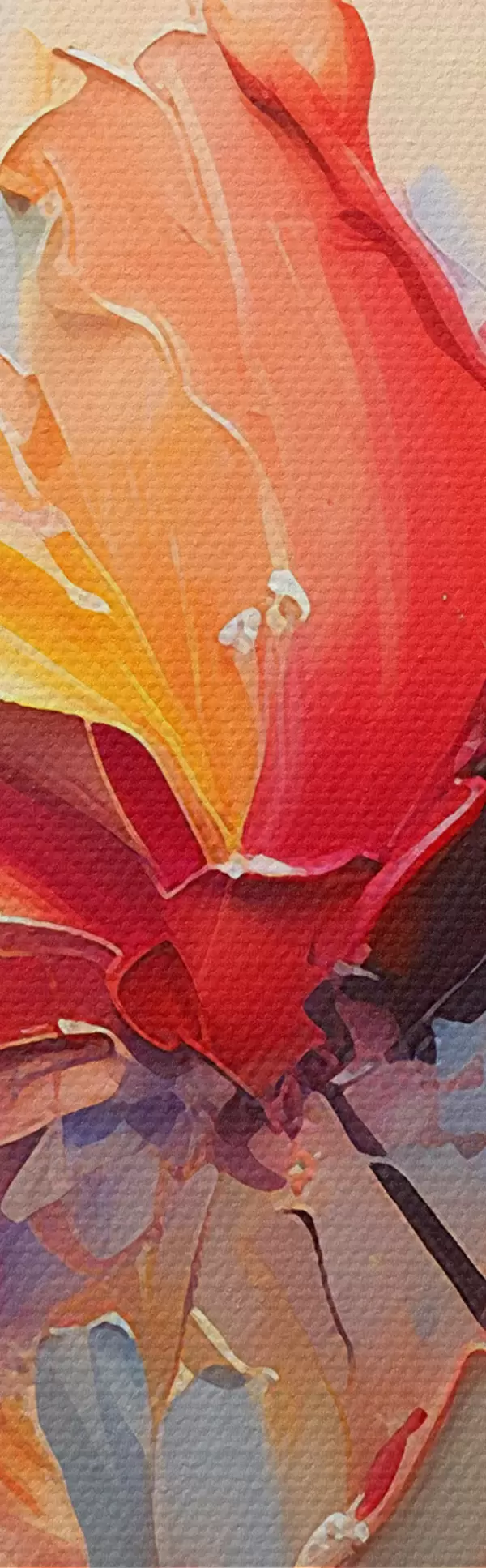 Het schilderij kan direct na ontvangst worden opgehangen. Het schilderij wordt opgespannen op een 2 cm breed houten spieraam.