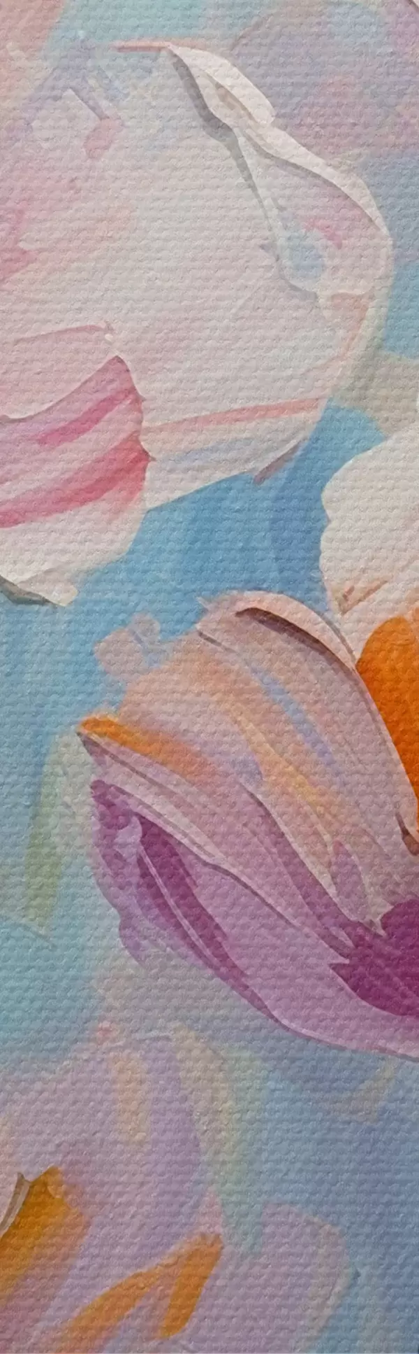 Het schilderij kan direct na ontvangst worden opgehangen. Het schilderij wordt opgespannen op een 2 cm breed houten spieraam.