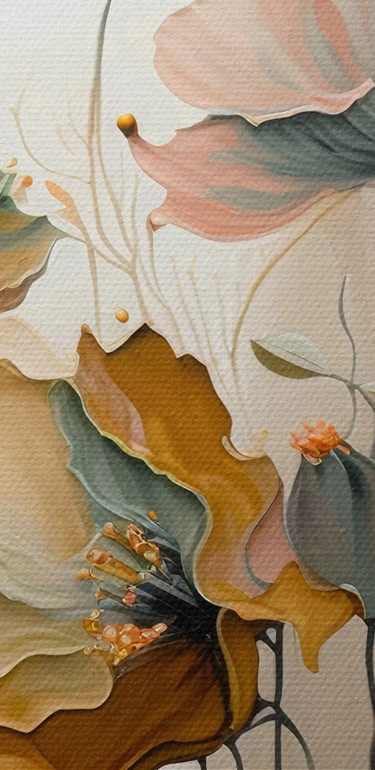Er zijn drie soorten materiaal te bestellen: Economic Canvas - een dicht en duurzaam materiaal voor digitaal printen, identiek aan schildersdoek, waterdicht oppervlak, realistische weergave van details, materiaal met gemiddelde korrel. Premium Canvas - de textuur lijkt op die van schildersdoek (verweven kleine draden). Zachte, gedetailleerde reproductie van de afbeelding op een mat oppervlak. Eco-Premium - hoogwaardige 100% katoenen stof. Dankzij de natuurlijke katoenvezels is het materiaal duurzaam en slijtvast. Uitstekende kleurweergave en detail.