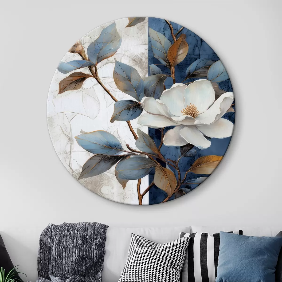Ronde schilderijen Bloemen op blauwe en witte achtergrond r37541