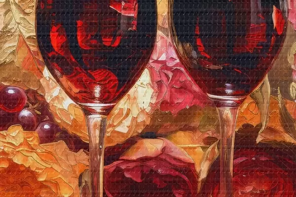 Ronde schilderijen Stilleven met glazen wijn Nr r37565