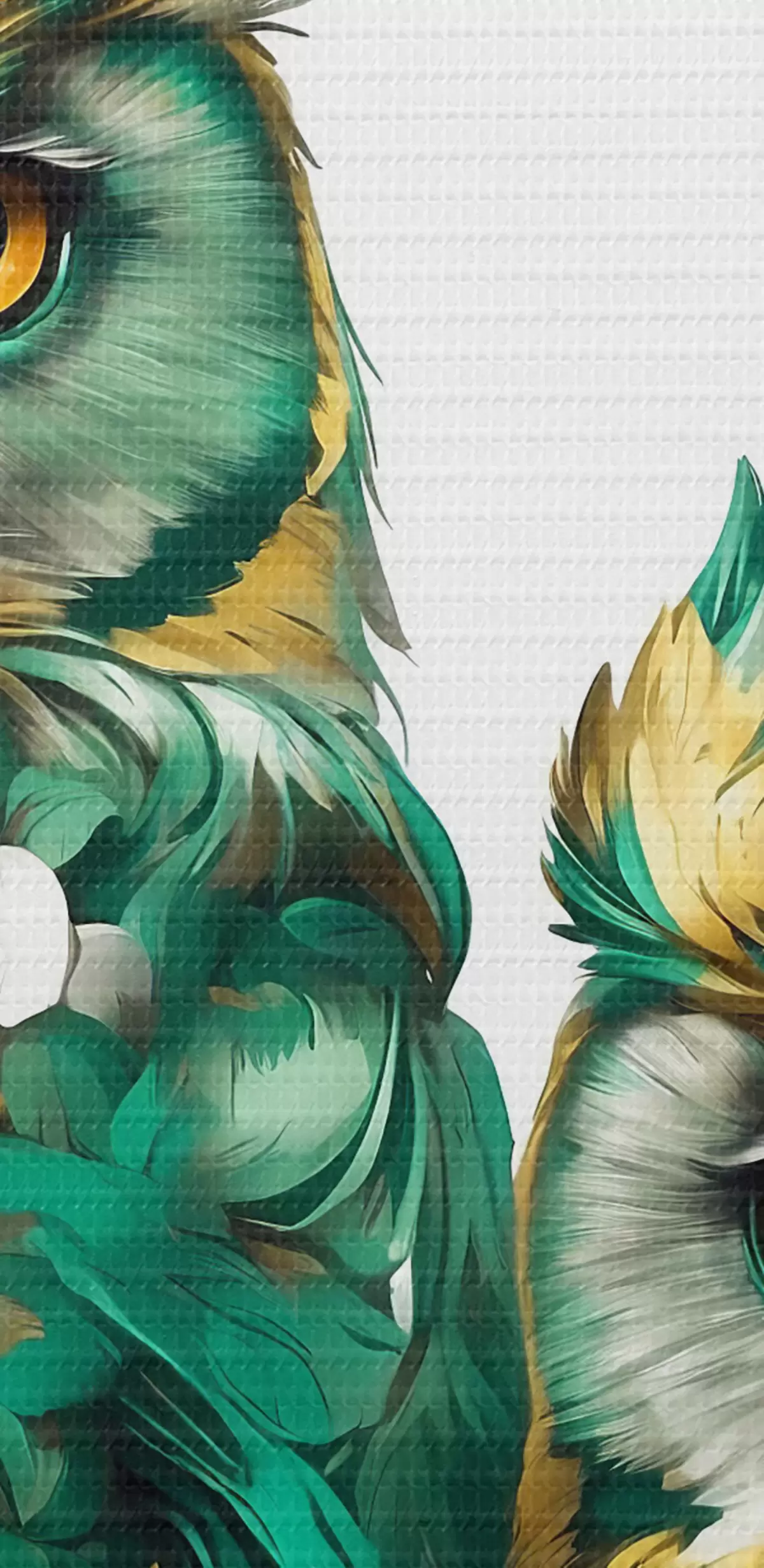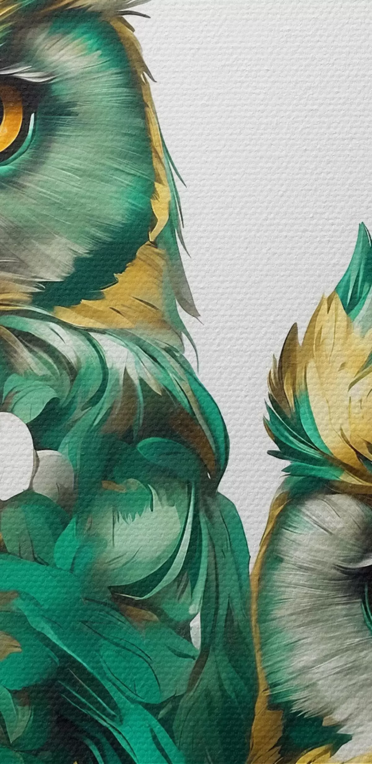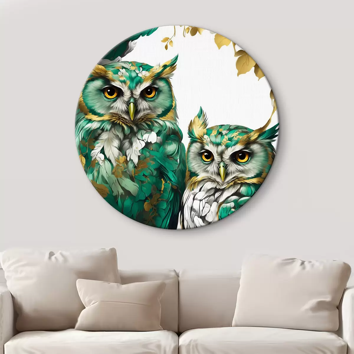 Ronde schilderijen Twee groene uilen in de bladeren Nr r37569
