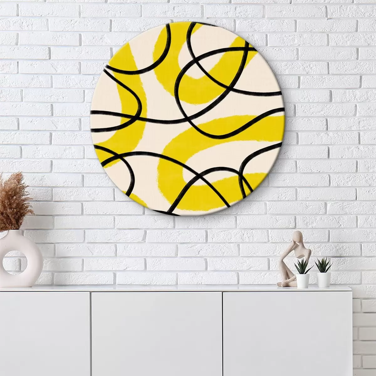 Ronde schilderijen Gele lijn en zwarte lijn r37571